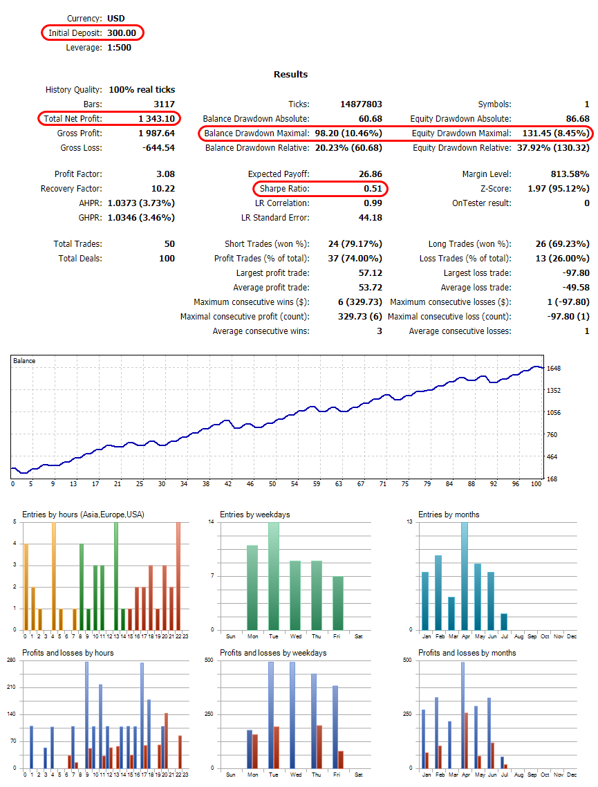 The backtest result is consistent with the real account