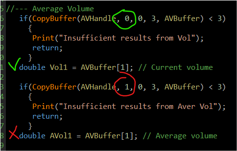 When I refere to the Average volume buffer (number 1 as you wrote) I get value 1.0.
