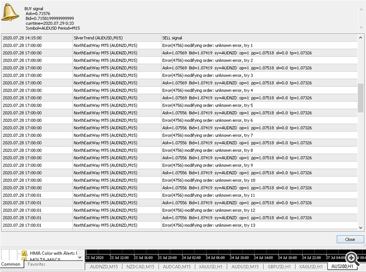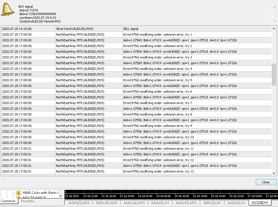 I am seeing this error when the EA appears to be attempting to modify a position.