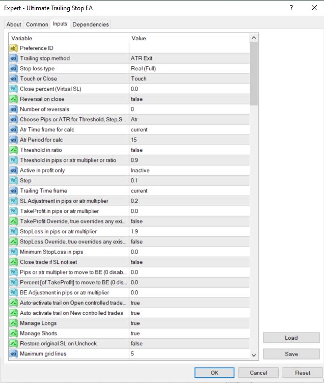 However, if you indicate Threshold in pips or atr multiplier or ratio=30 and Fixed Trail=20, then the program will wait till you have achieved 30 pips in profit and then trail 20 pips below the closing price, protecting 10 pips at the onset.