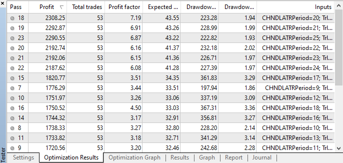 I then experiment with optimization with various trailing stops of UTS to see if I can get bettter results: