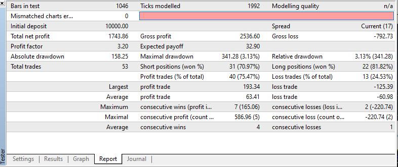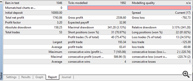 I can then run the strategy tester as is, and see if it matches the signal performance, more or less: