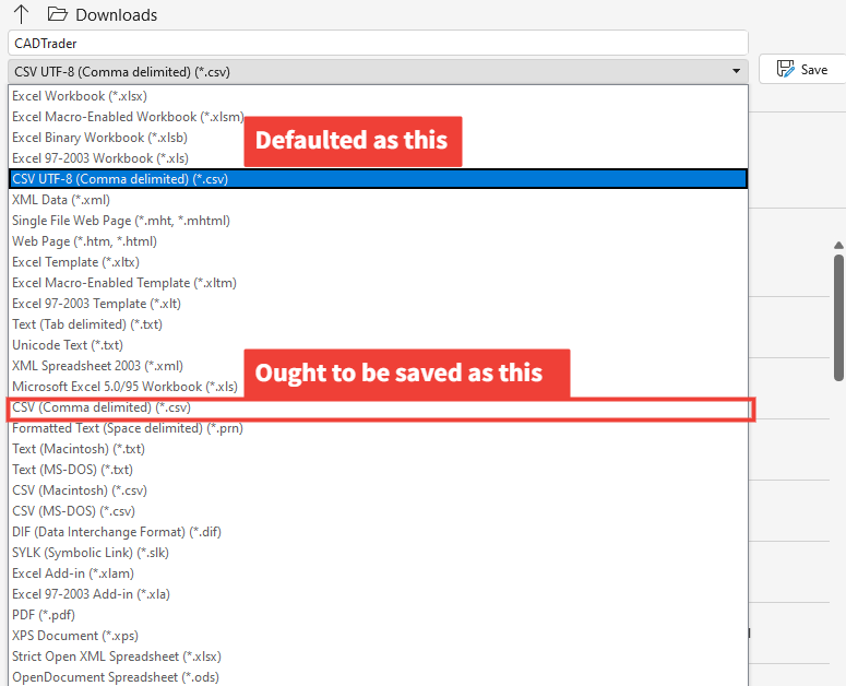 When backtesting, make sure that the signal history's csv file is saved in the correct format. By default, the signal history gets saved in CSV UTF-B (Comma delimited) format when it should be in CSV (Comma delimited) format to read correctly.