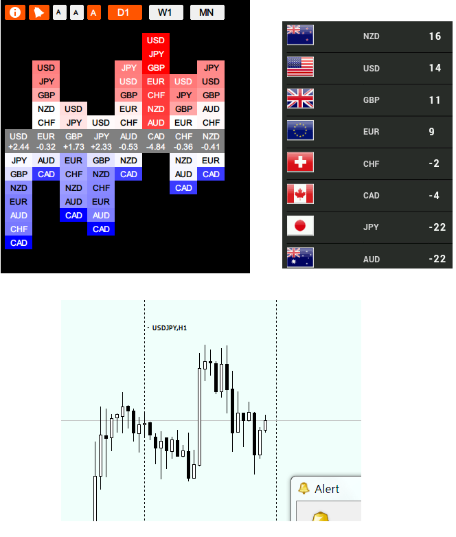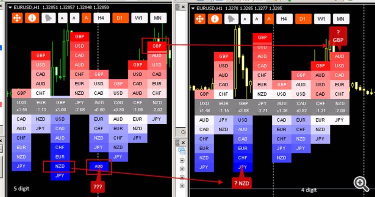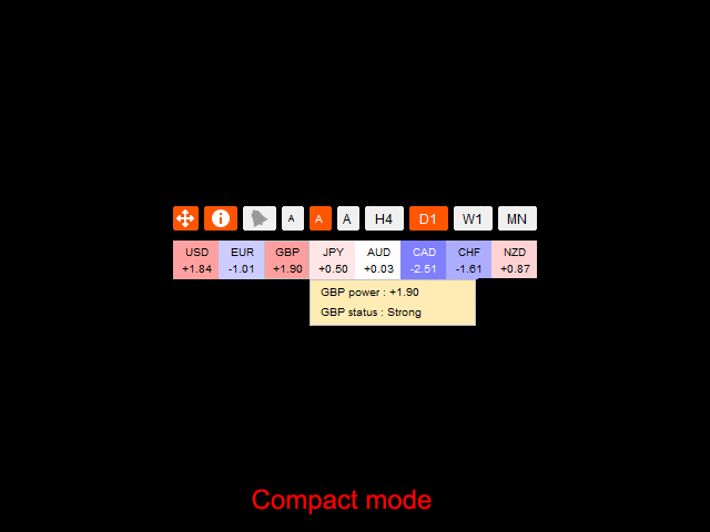 Also, indicator may take time to analyze and arrange the currency cells in the first time it load new timeframe, so please wait until it finished.