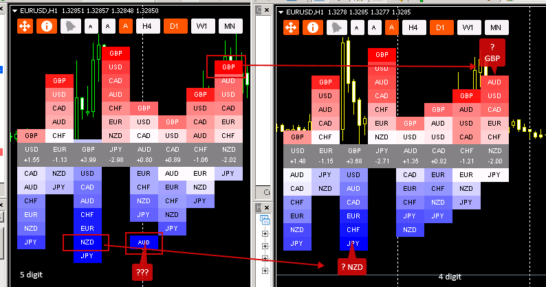 Как я уже упоминал в описании, в начале дня (если вы выбираете D1 сроки) все валюты почти нейтральным, то с течением времени некоторые из них будут расти сильнее и отступят некоторые слабее (дивергенция). Вы хотите, чтобы торговать пару между сильнейшей валюты и самый слабый, так что разные силы между ними больше, чем 5. Пожалуйста, прочтите ссылка стратегии участие в в описании.