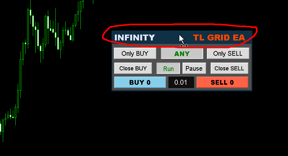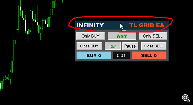 Hello. To move the TL GRID EA trade panel you should hold down the left mouse button on the top of the trade panel and pull