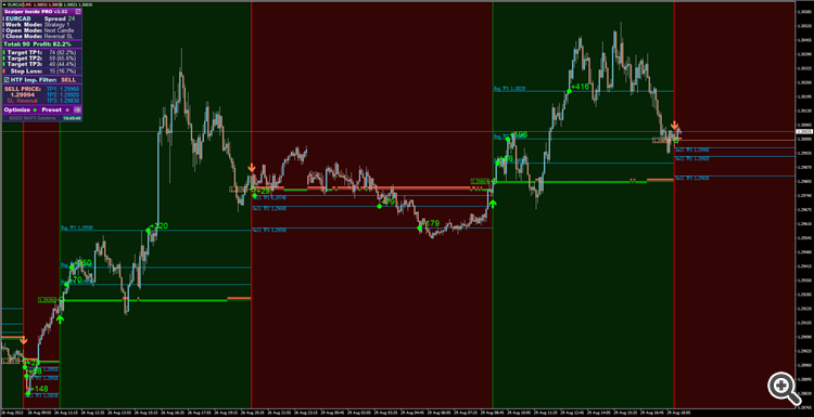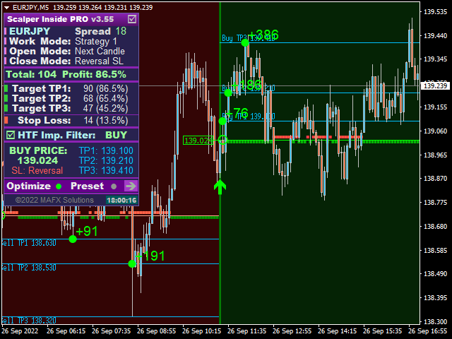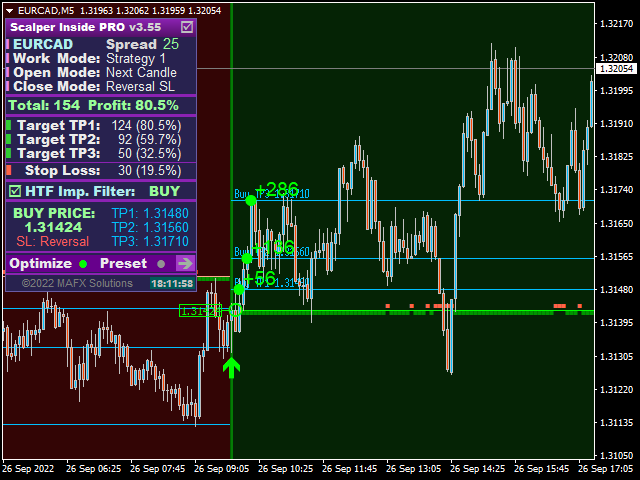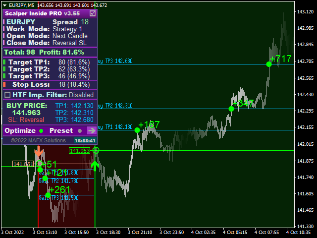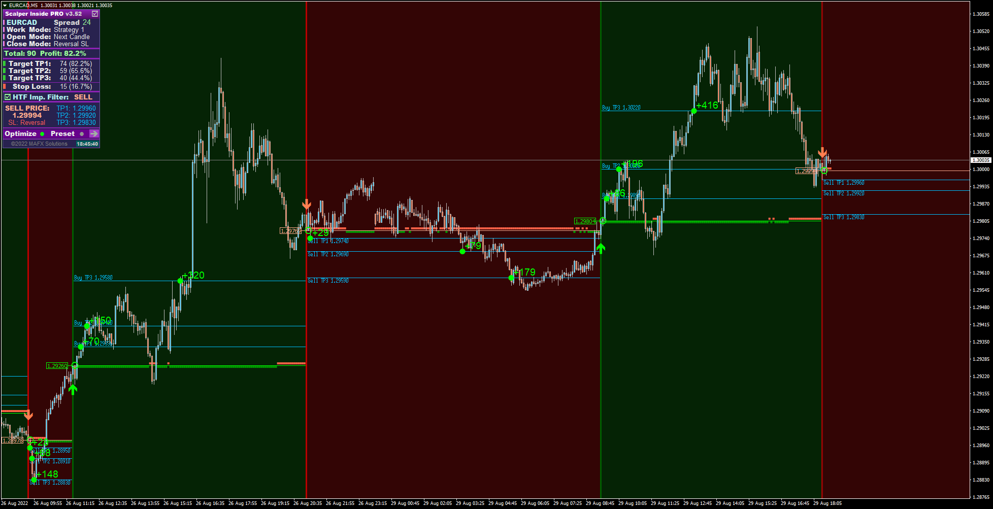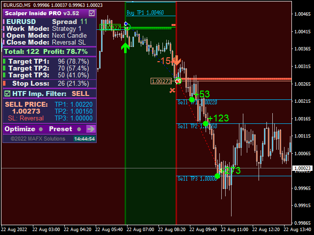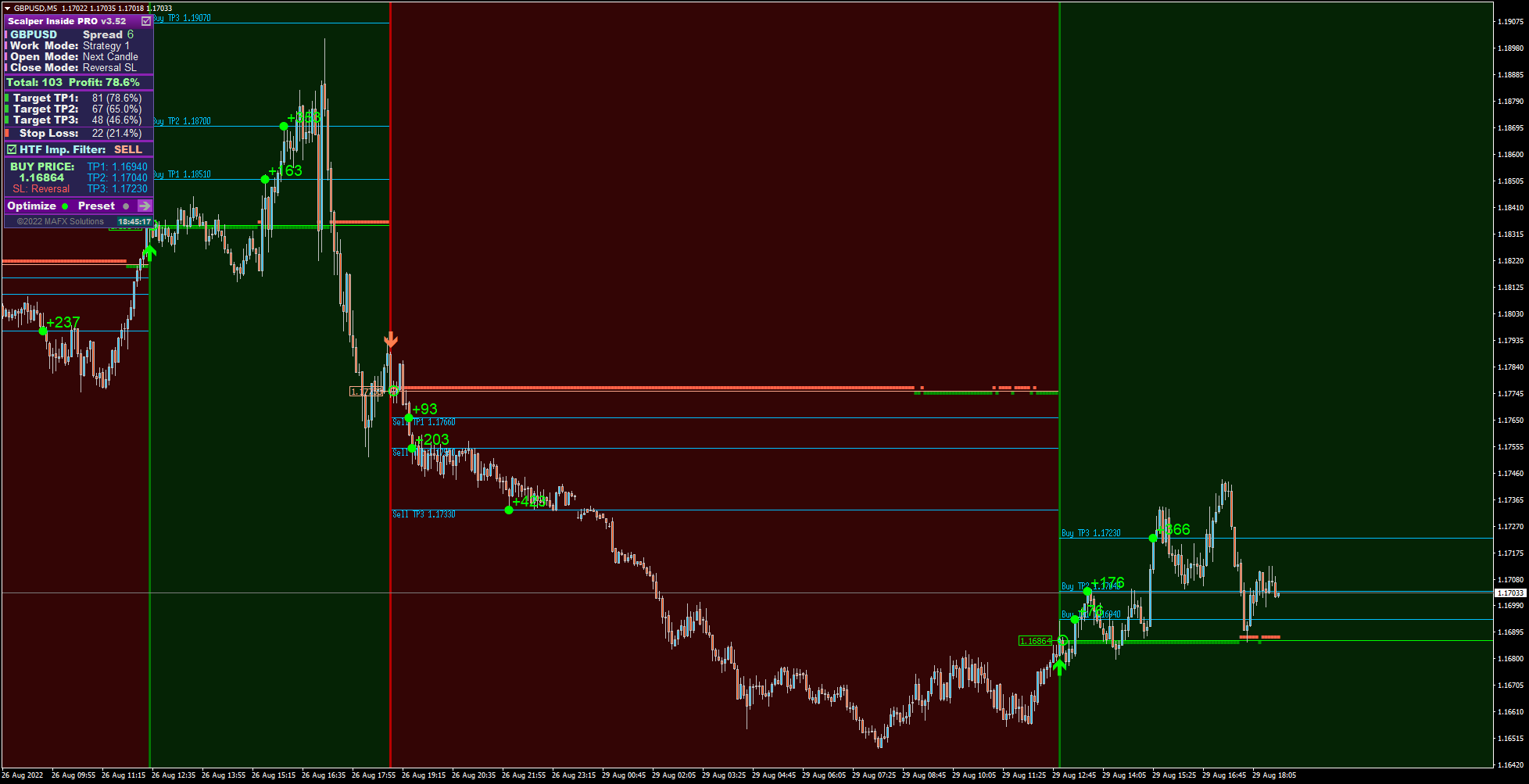 If we see a Buy signal from Scalper Inside PRO, but the HTF-Filter shows an opposite trend, it is better to avoid such a position!