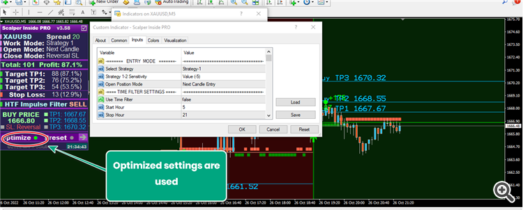 In the new version I have made it possible to use the indicator, with optimized settings, in external (custom) EA's.