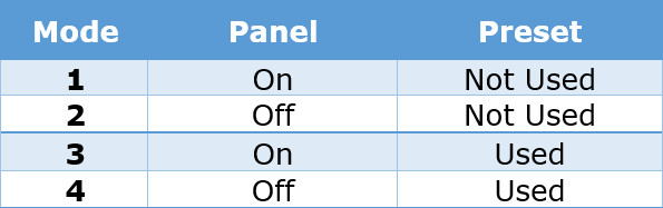 In mode 1 the indicator panel is activated, and the preset is not used: