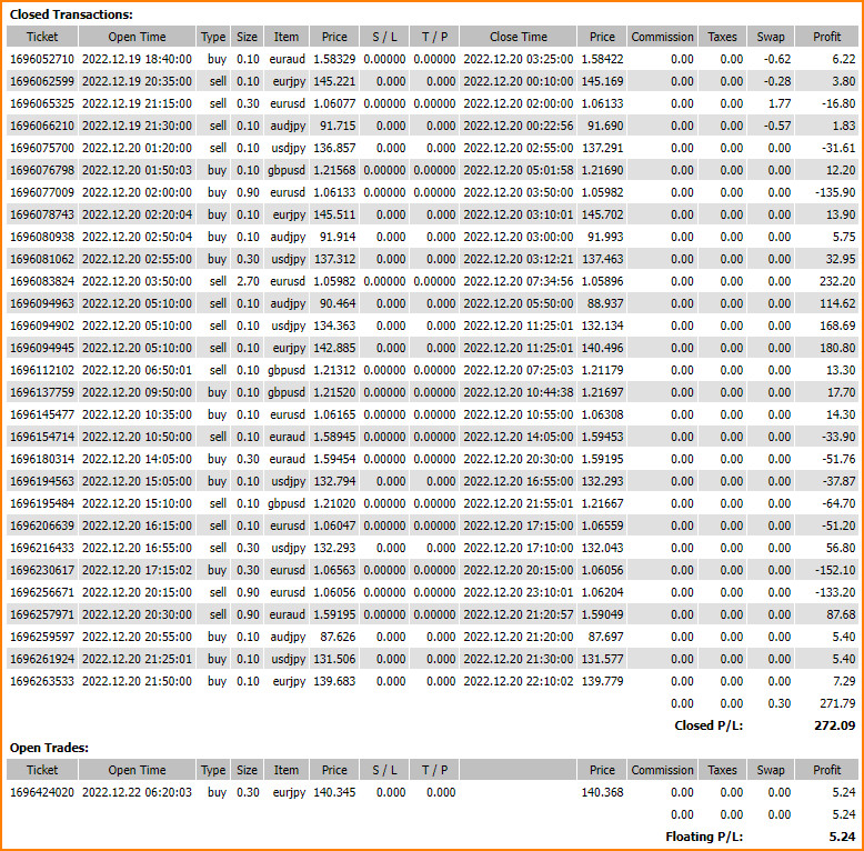 For example, right now, EURUSD is not showing an excellent WR% and is not very predictable, although recent trades look good: