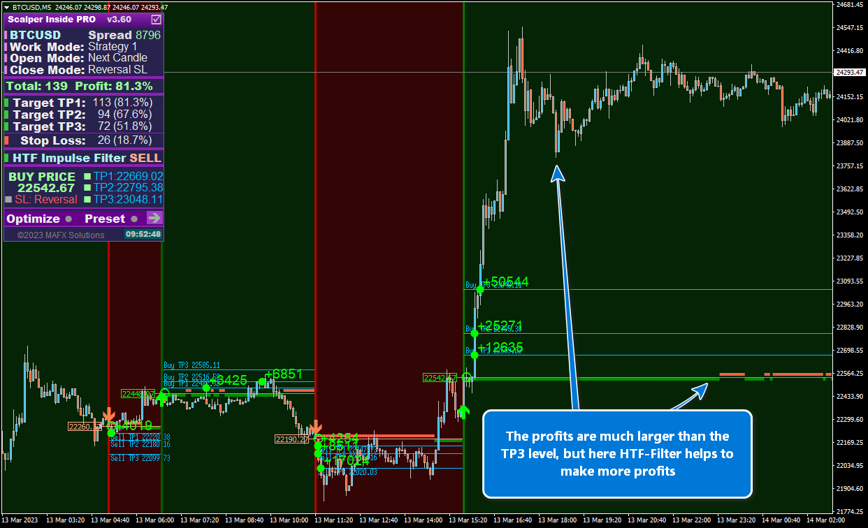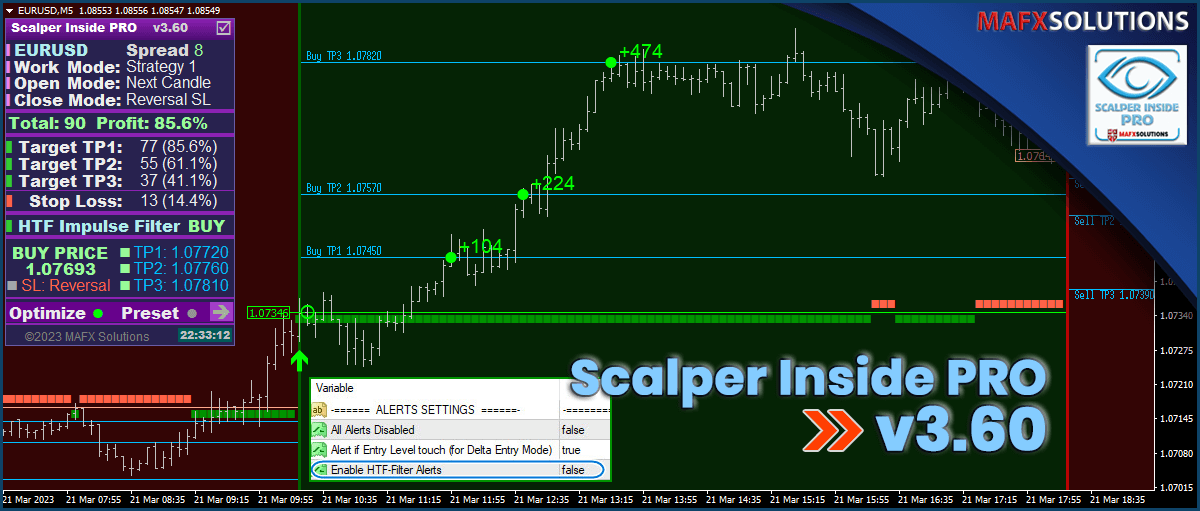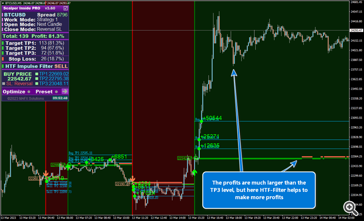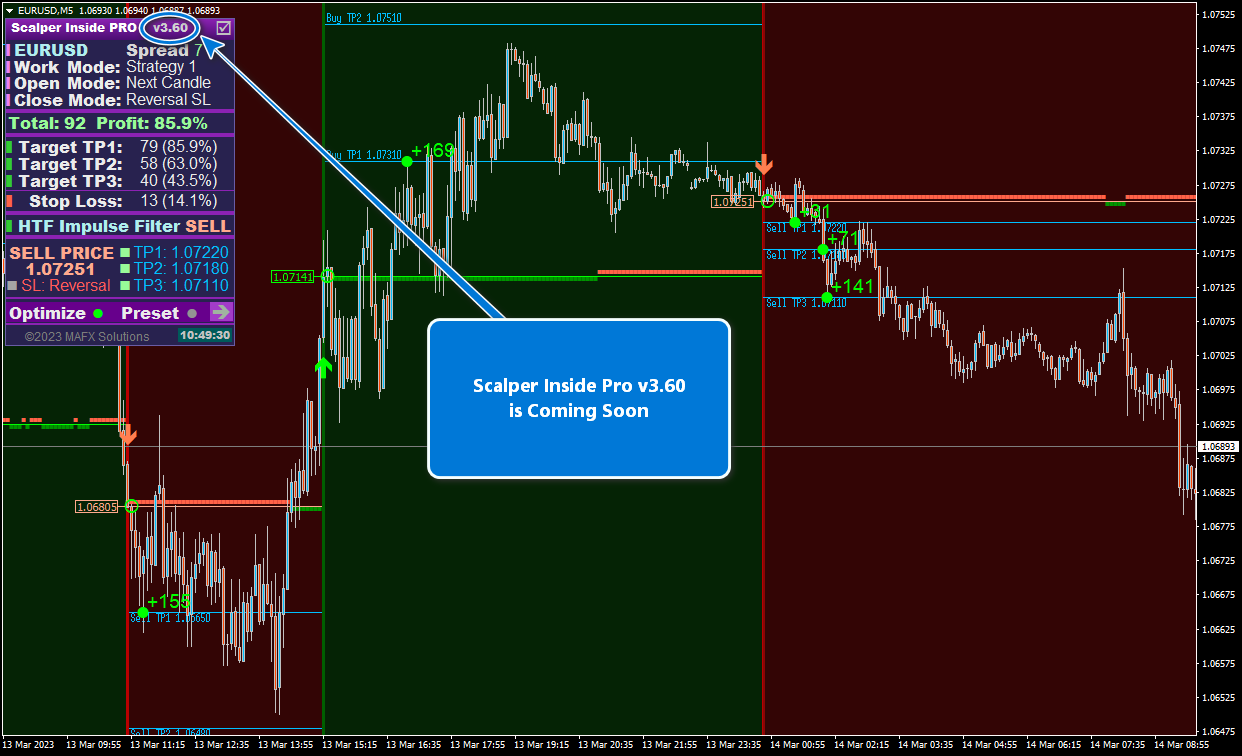 🍀 Good Luck & Big ProfitsHi friends. By the way, I want to announce the v3.60 version of the Scalper Inside Pro indicator. You can already see examples of this new version in the previous post. Since I "announced" it, there is no point in hiding this news. This new version does not contain anything revolutionary, but you know me - I am always trying to improve something, to make something even better. And I also understood from the previous releases that I should not make any global changes, which could affect the strategies you already use with the indicator. So, the main changes have been made inside the code to improve the algorithms. Also, add a signal at HTF-filter signal change, which I have been asked to do several times already. The new version is undergoing final testing and will be published in the next few days.