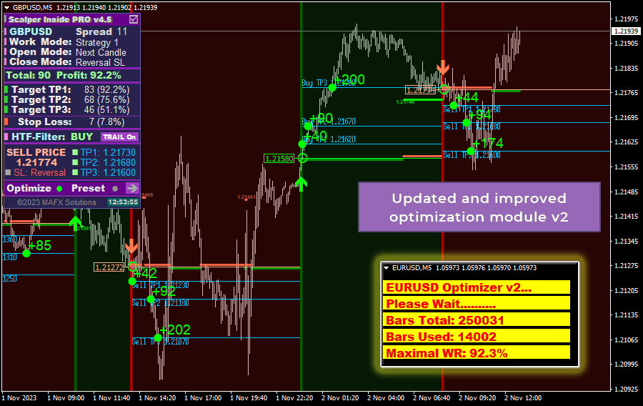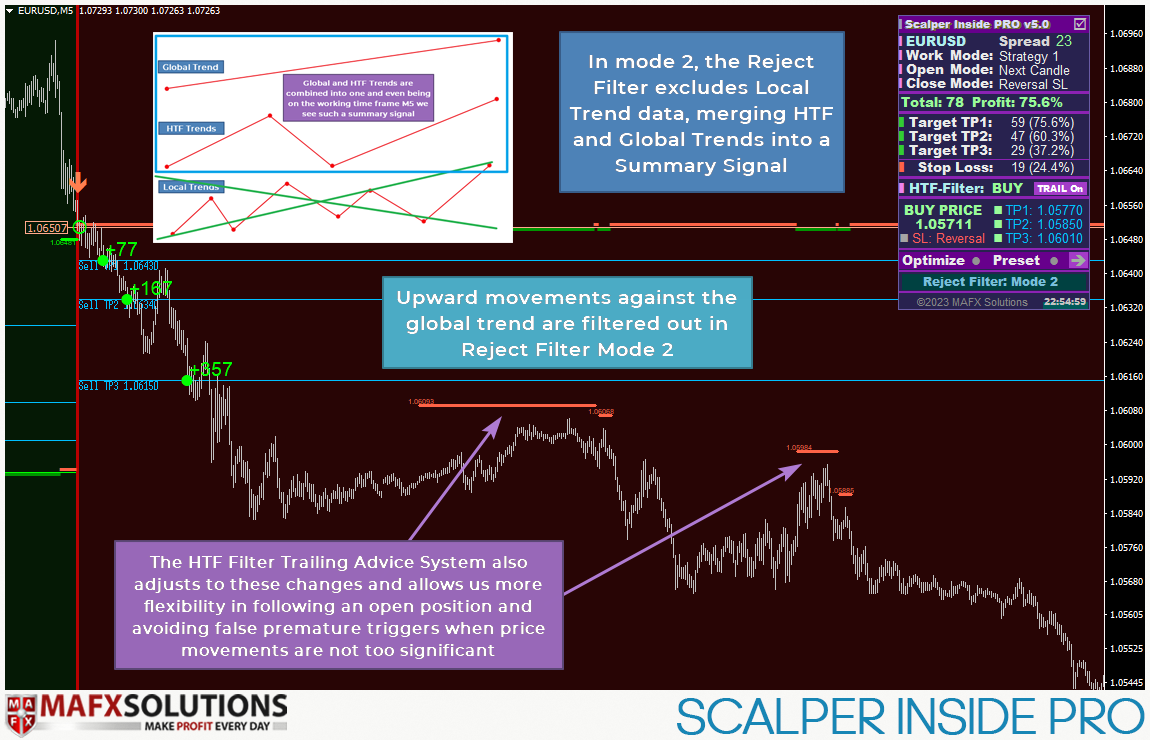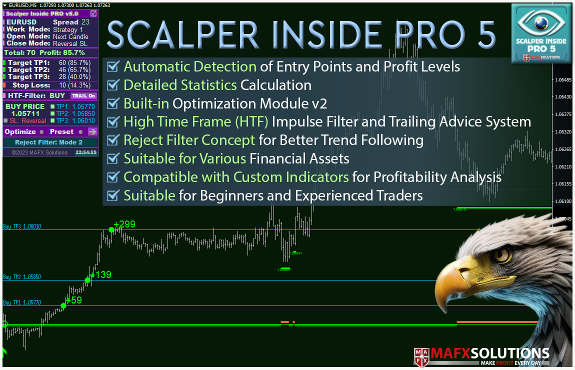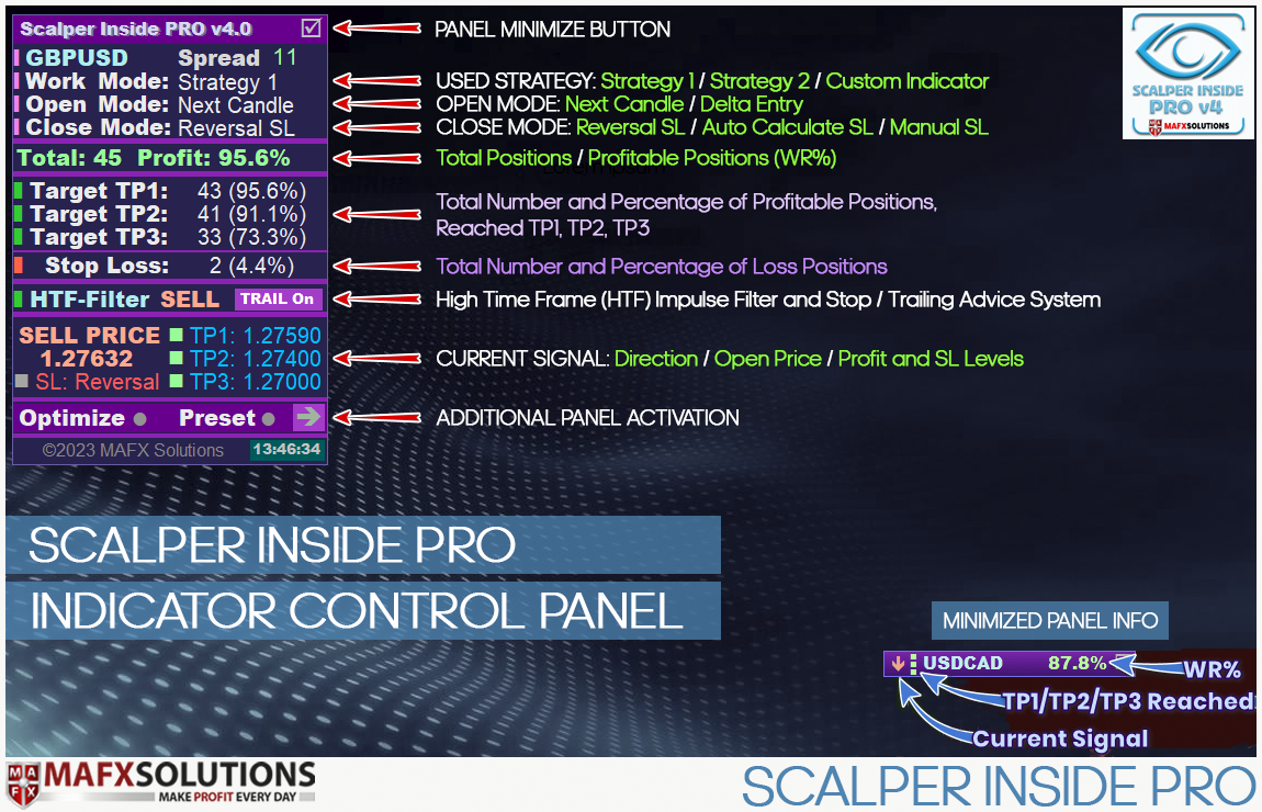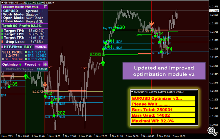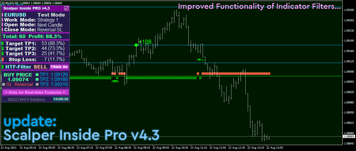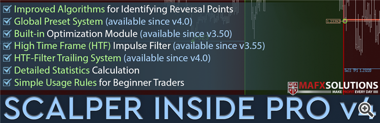 So new MT4 versions of Scalper Inside PRO indicator will be coming soon. And now I am already working on creating an indicator for MT5 based on Scalper Inside PRO. I have almost finished this process a couple of times, but I realized that it is too boring and uninteresting to make just a copy, which is already there, but only for another terminal, and doing something just to get sales is not my style at all. Therefore, I plan to make the MT5-version very special, with its own features, because the improved MQL5 programming language greatly simplifies many technical processes. So you will see for yourself :-)Wow, what a long monologue. In conclusion, I want to thank you and all my clients for your support and feedback on my work! I truly value your words and strive to live up to the feedback and reviews in which you express your appreciation for my work and share positive words about it!