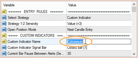 Choosing Select Strategy = Custom Indicator: