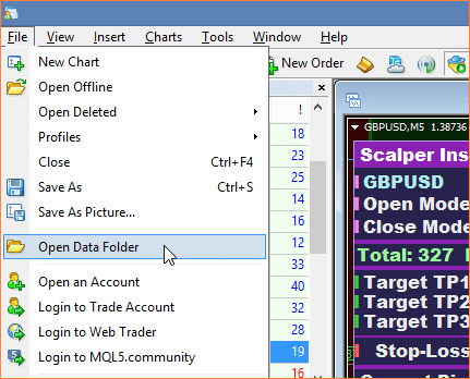 Next step, we launch the MT4 terminal and the Scalper Inside Pro indicator: