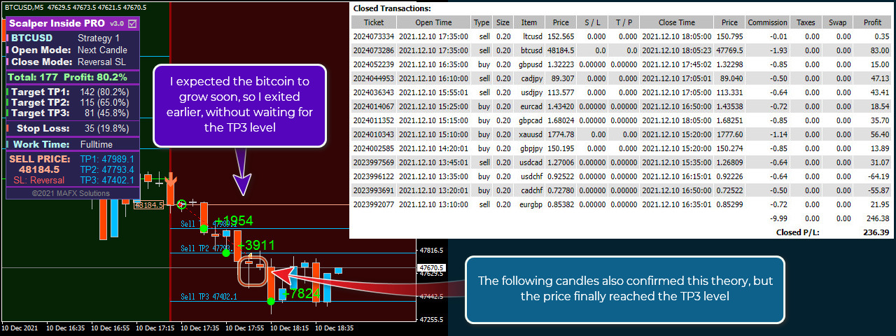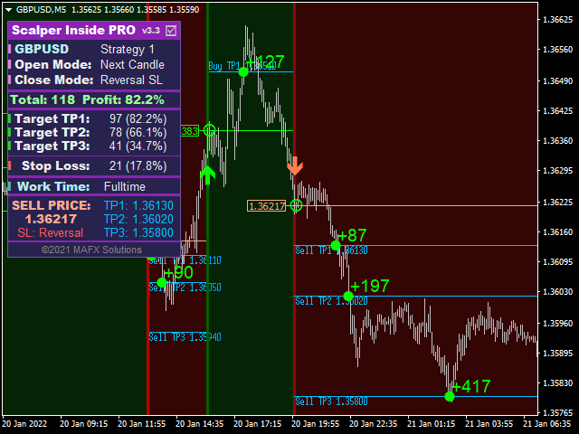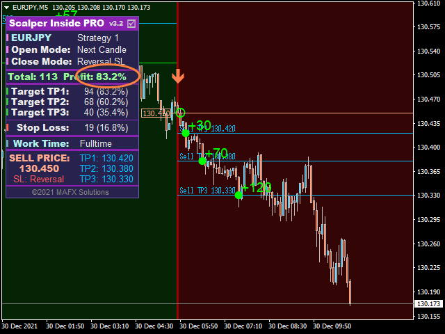 First, a simple answer: my favorite strategy is #1. Now in more detail. These strategies have a completely different algorithm for finding reversal points. But since their common task is to find a price reversal, their signals may be similar in some places - somewhere one indicator gives a signal earlier, somewhere another one does. I have made several strategies for one indicator to let every user choose the comfortable strategy that is convenient to him and fits his trading style. Eventually, I planned to add more strategies, but I gave up this idea because it was confusing for users because of a large number of built-in strategies. I mainly use the first strategy built into the Scalper Inside PRO indicator.