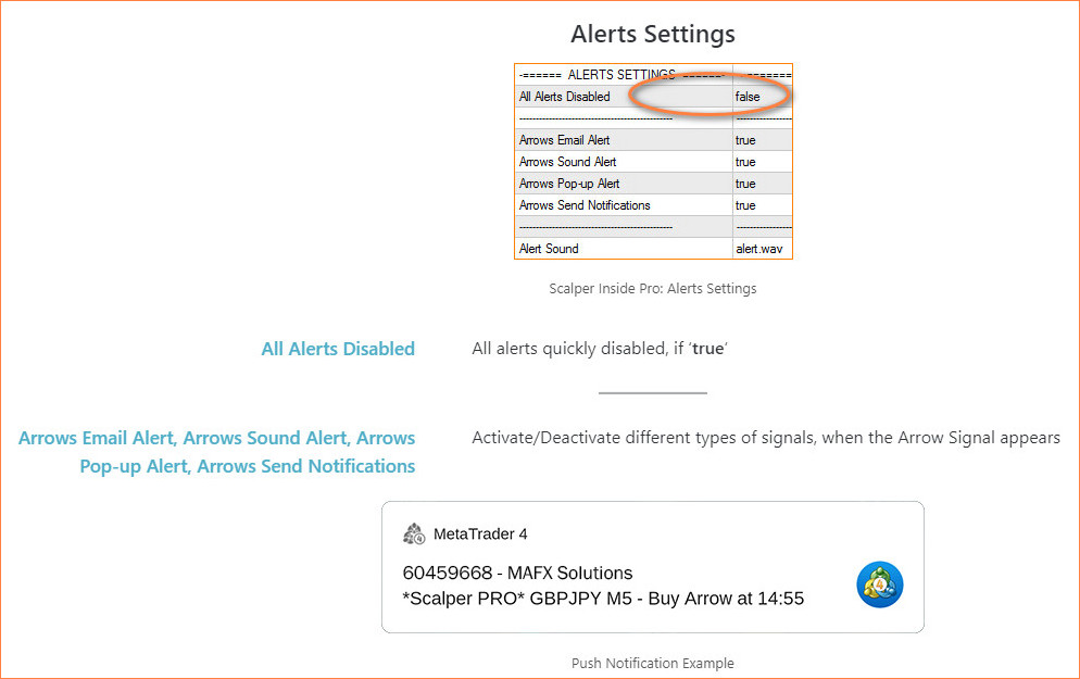 The 'All Alerts Disabled' switch is maked to enable you to quickly turn off all the indicator's signals with one setting. To do this you need to set this parameter to true.
