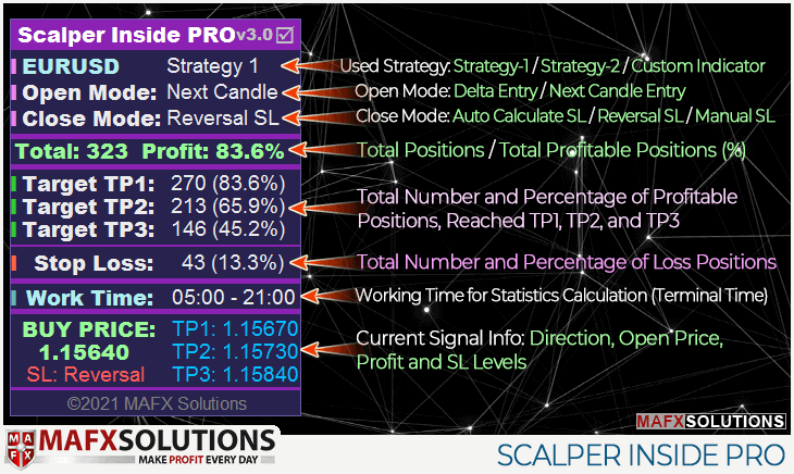 Yes, the Scalper Inside PRO indicator will allow you to earn quickly since I created this product initially for myself and invested in it a lot of effort and my many years of experience. The indicator consists of many modules. When you install the indicator on the price chart, each of these modules begins to perform its function, checking market conditions and collecting all the data into a unified signal. But, with all this, I do not recommend rushing into battle right away and risking a lot at once, trying to earn quickly. If I were asked now what is your main mistake at the beginning of your journey, then I would say that it is impatience - the desire to get everything as quickly as possible, which leads to mistakes. We are starting to inflate lots, we are starting to violate the rules of the system, because we want to get back what we lost in unprofitable trades as soon as possible, we are trying to trade without losses at all, which is basically impossible. Therefore, I recommend learning how to earn not quickly but steadily! Better less, but stable. And when you gain confidence, you will be able to increase both the lot and the deposit since you will gain practice, and it will be much easier for you.