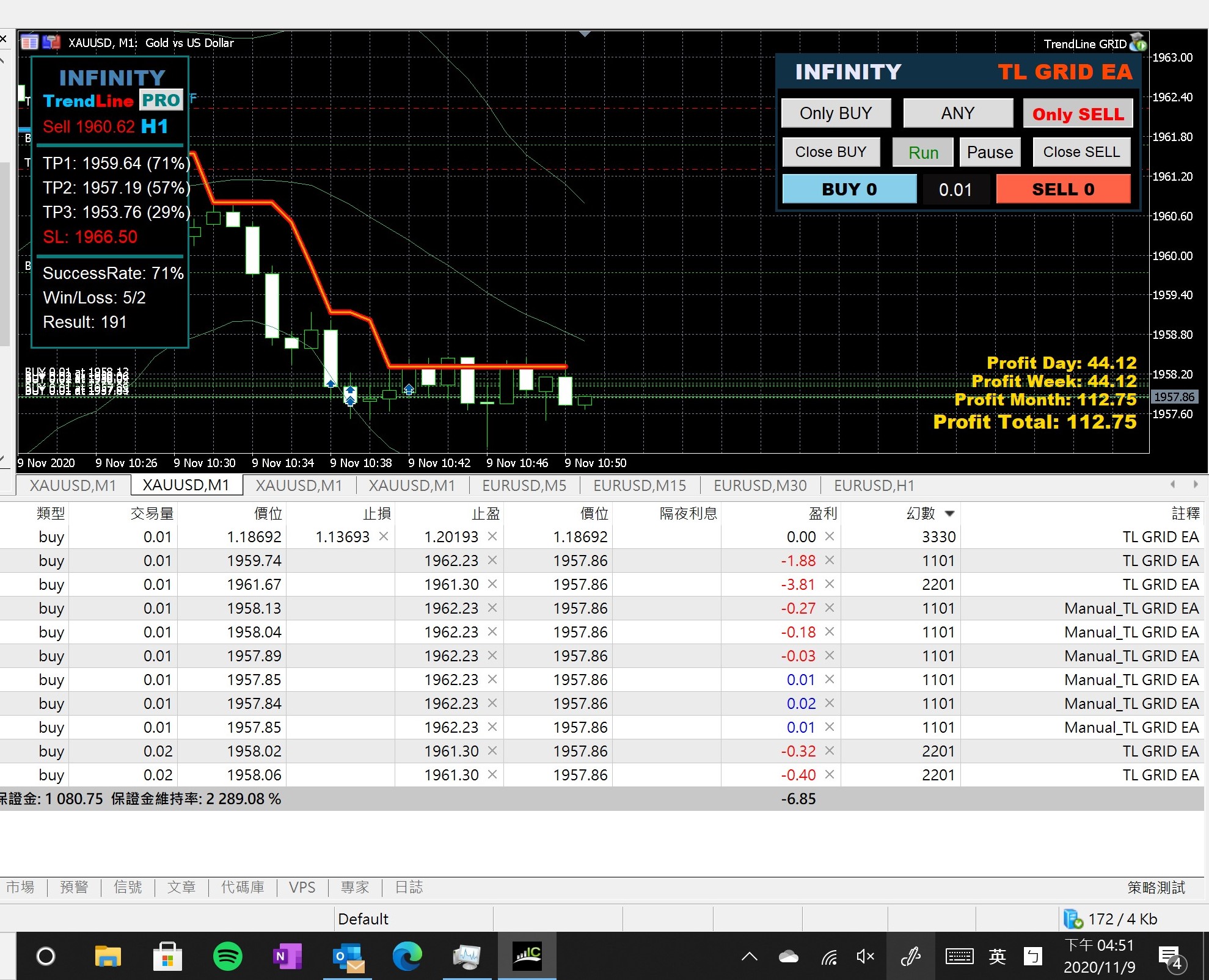 Profit Day: $11.71 💰⭐⭐⭐⭐⭐ TL GRID EA ⭐⭐⭐⭐⭐