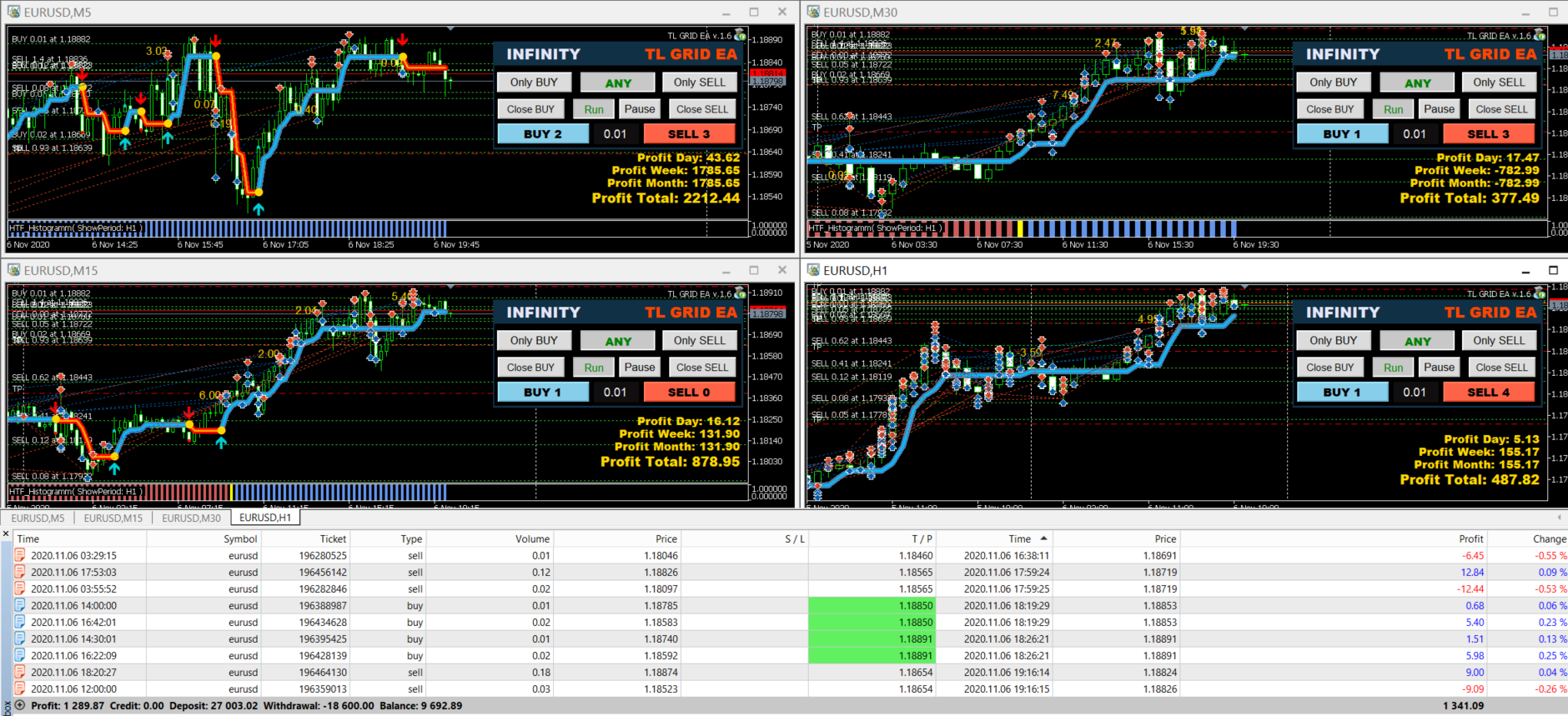 💰💰💰 Last week profit: $1289.87 with TL GRID EA: