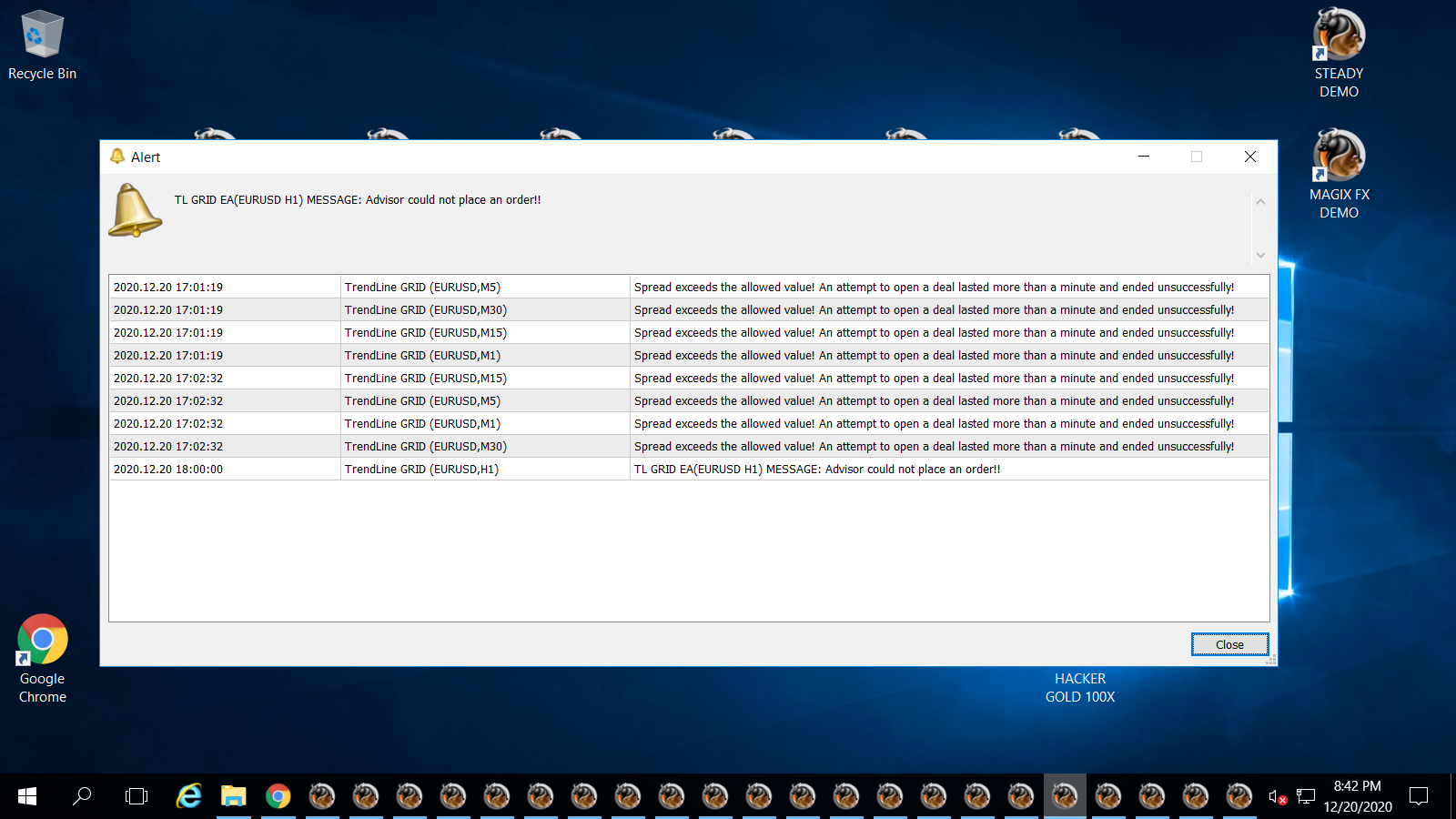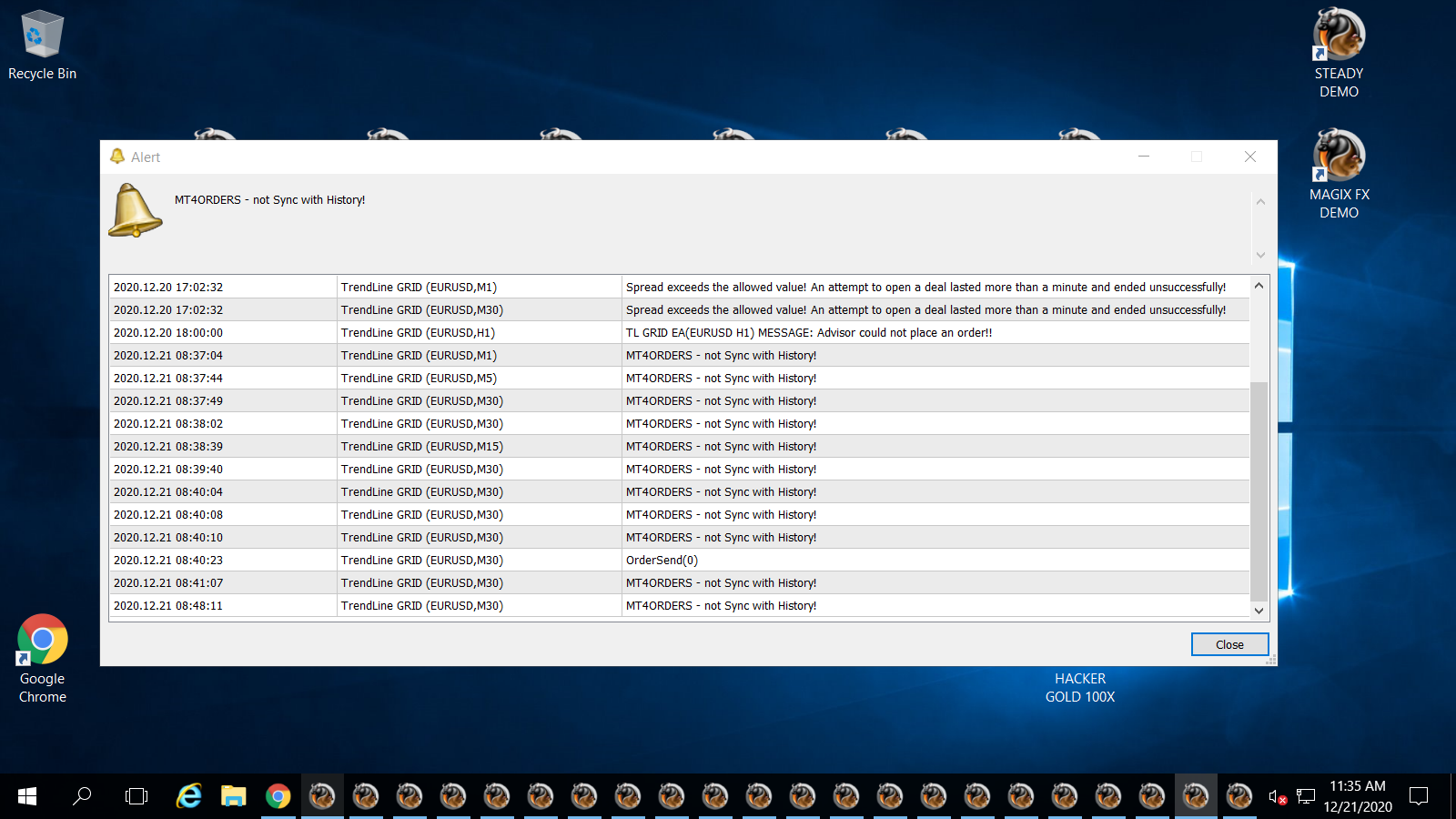 Please attached screenshot of alert on TL Grid terminal