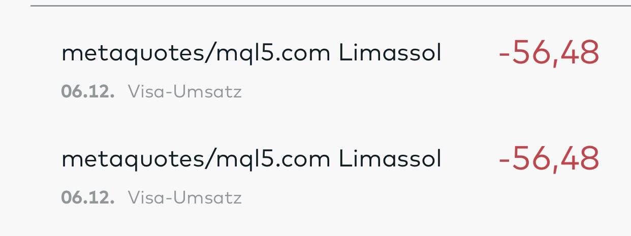 Können Sie sich bezüglich dieses Zahlungsproblems bitte an den Service Desk wenden? Als Verkäufer haben wir keine Möglichkeit, eine Rückerstattung zu leisten, da wir die Namen der Käufer usw. nicht sehen und wir keine Möglichkeit haben, eine Rückerstattung für ein ähnliches Problem zu gewähren. Alle Zahlungen werden vom MQL5-Support verwaltet.