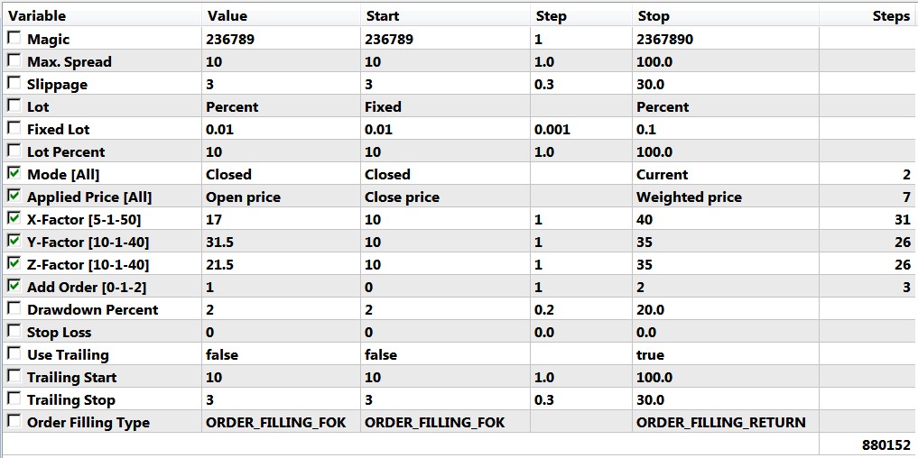 You can also try choice with lot percent, drawdown percent, stop loss and trailing.
