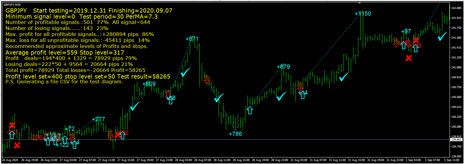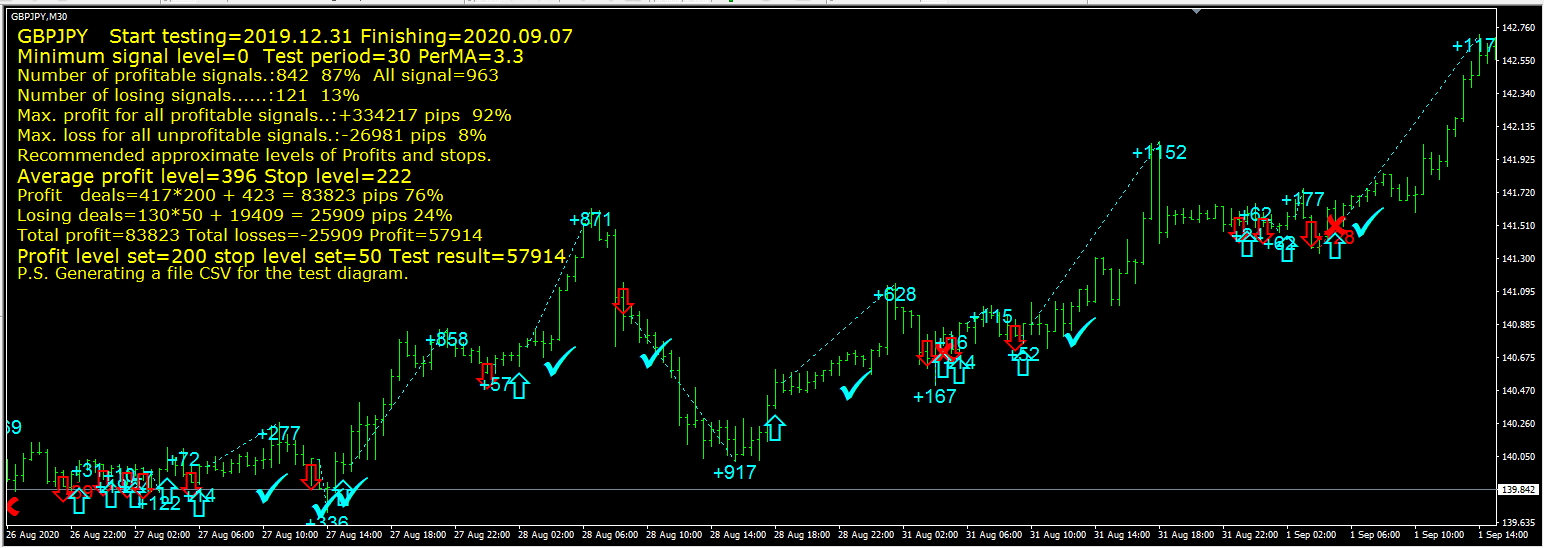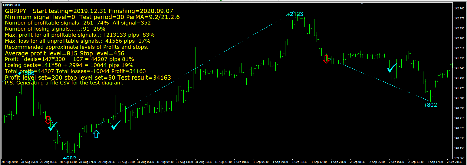 При тестировании добавил учет спреда в итоговой сумме профита. Но это будет в след версии, пока для информации можно просто кол-во сигналов умножить на спред установленный при тестировании, у узнаем сколько pips профита теряем на спреде (или комиссии).