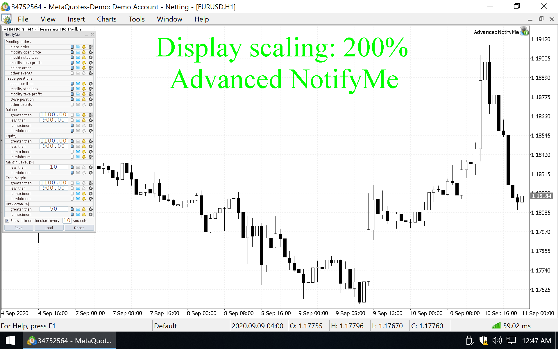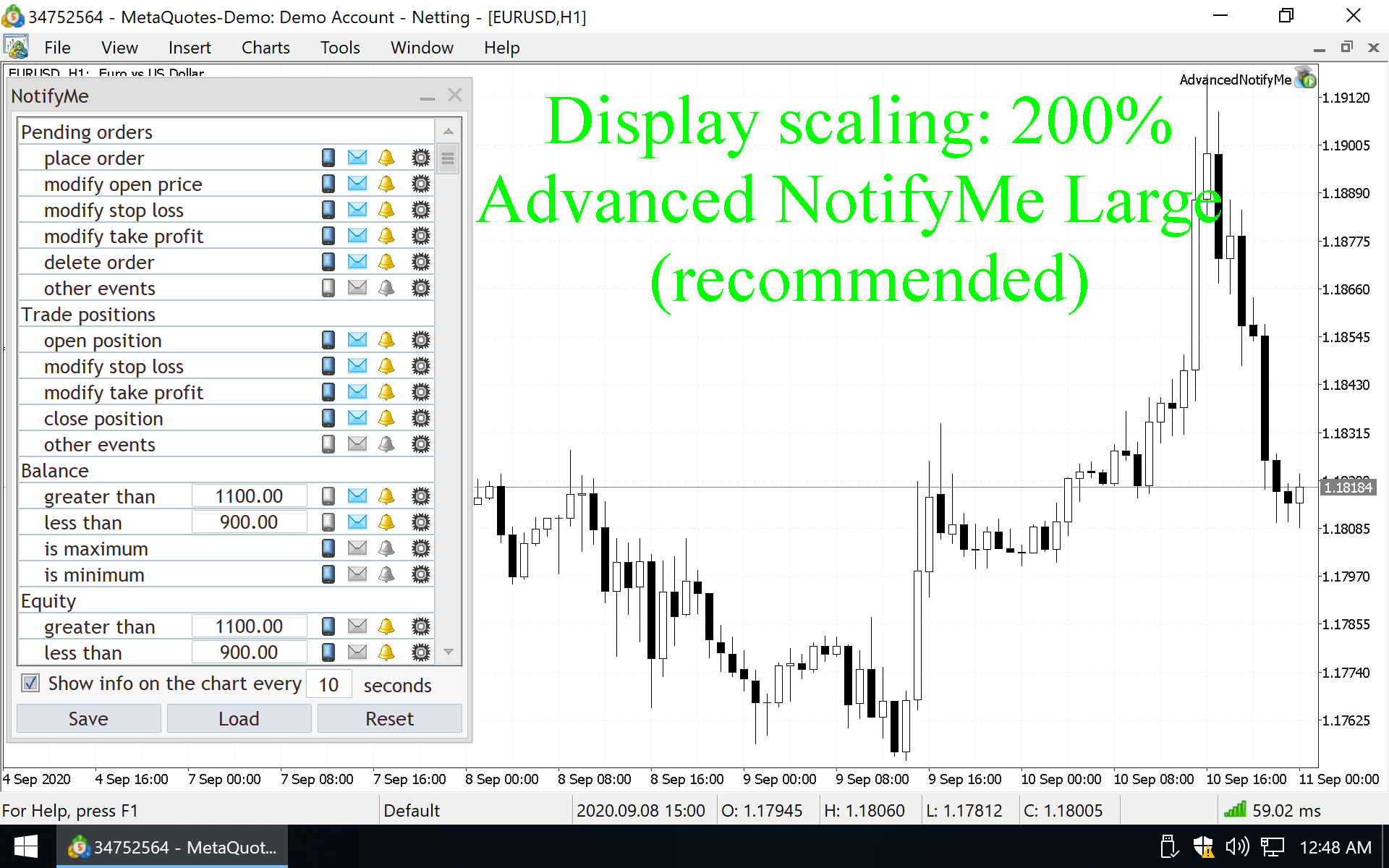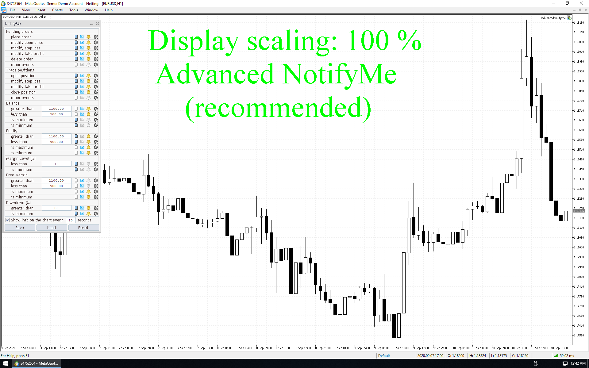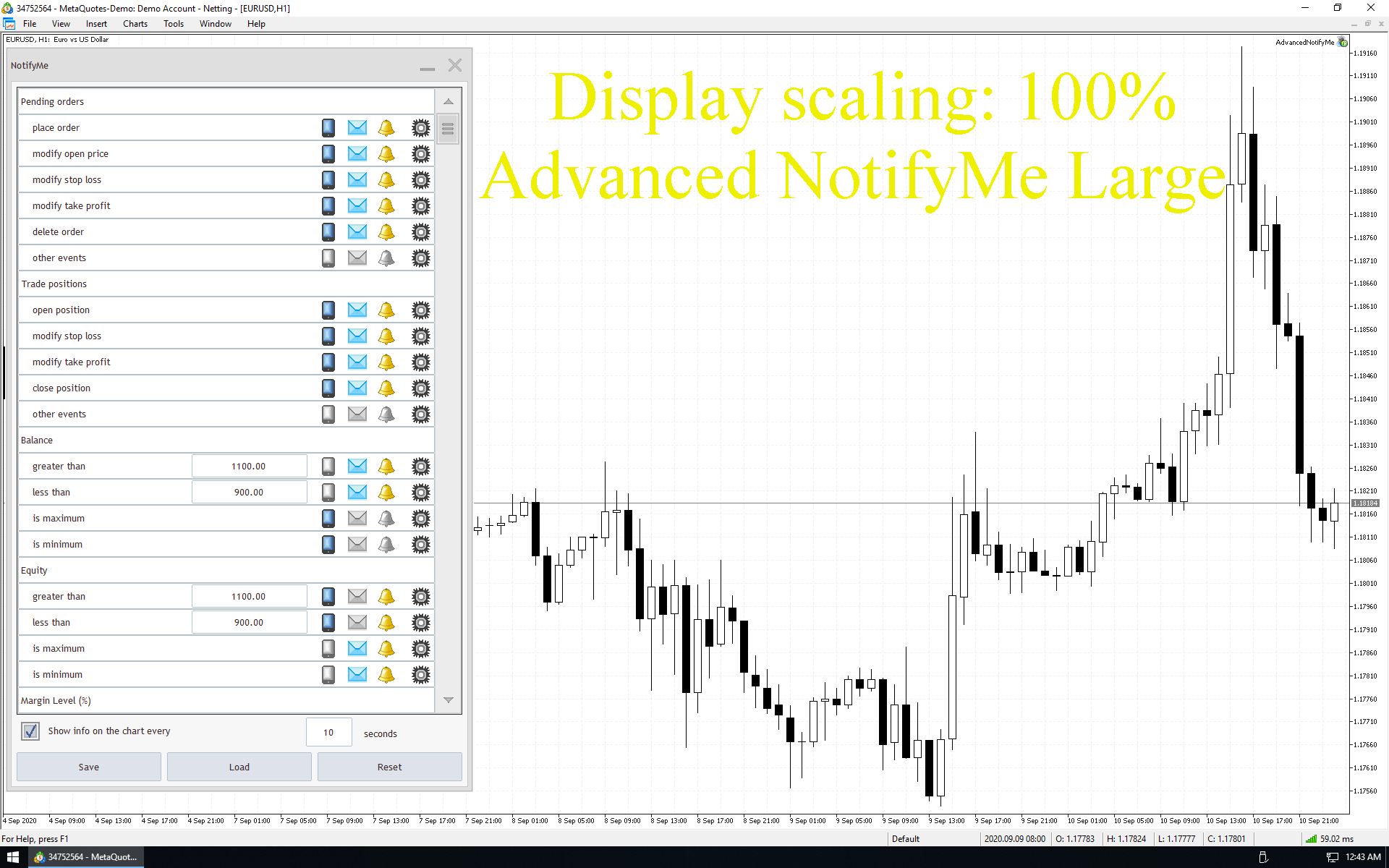 Advanced NotifyMe for MT4 is regular graphic user interface size utility.