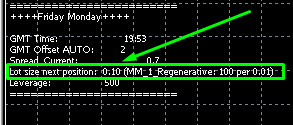 To check the correctness of the lot calculation, take a look at the chart to which EA is attached and look at the displayed "Lot size next position" value: