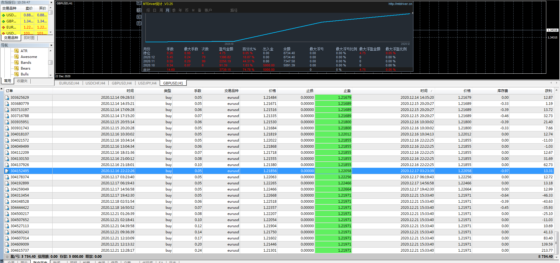 Profit and loss of the new account in the latest month