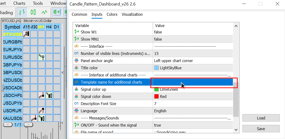 In general, you can save your favorite indicators in a template and set the template name in this line.