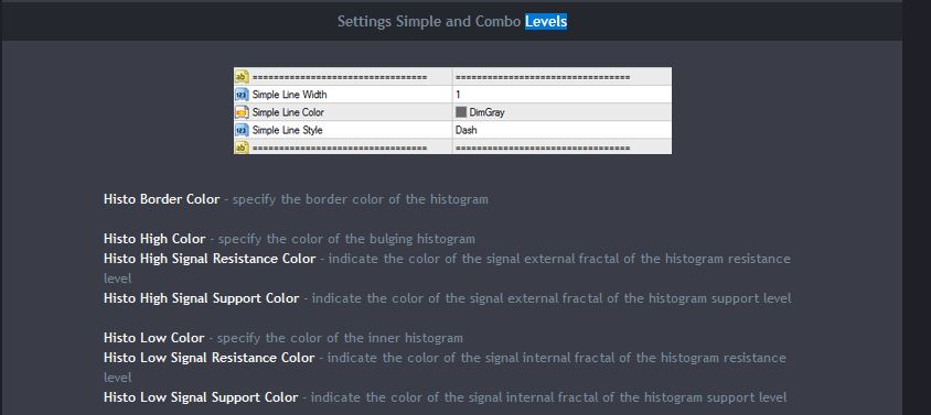 Firstly I'd like to say i really enjoy the Murrey Math Combo Levels and the Murrey Math Levels indicator you have. I've purchased both. I'd like some help concerning your MM Combo Levels indy! I went to your website to look at the manual (https://upd.one/levels/murrey-combo-levels.html) and noticed for the sections "Settings Simple and Combo Levels" you have pics of settings that are in the indicator, however the explanations don't match the pictures. I've attached images so you could see what I'm referring to.