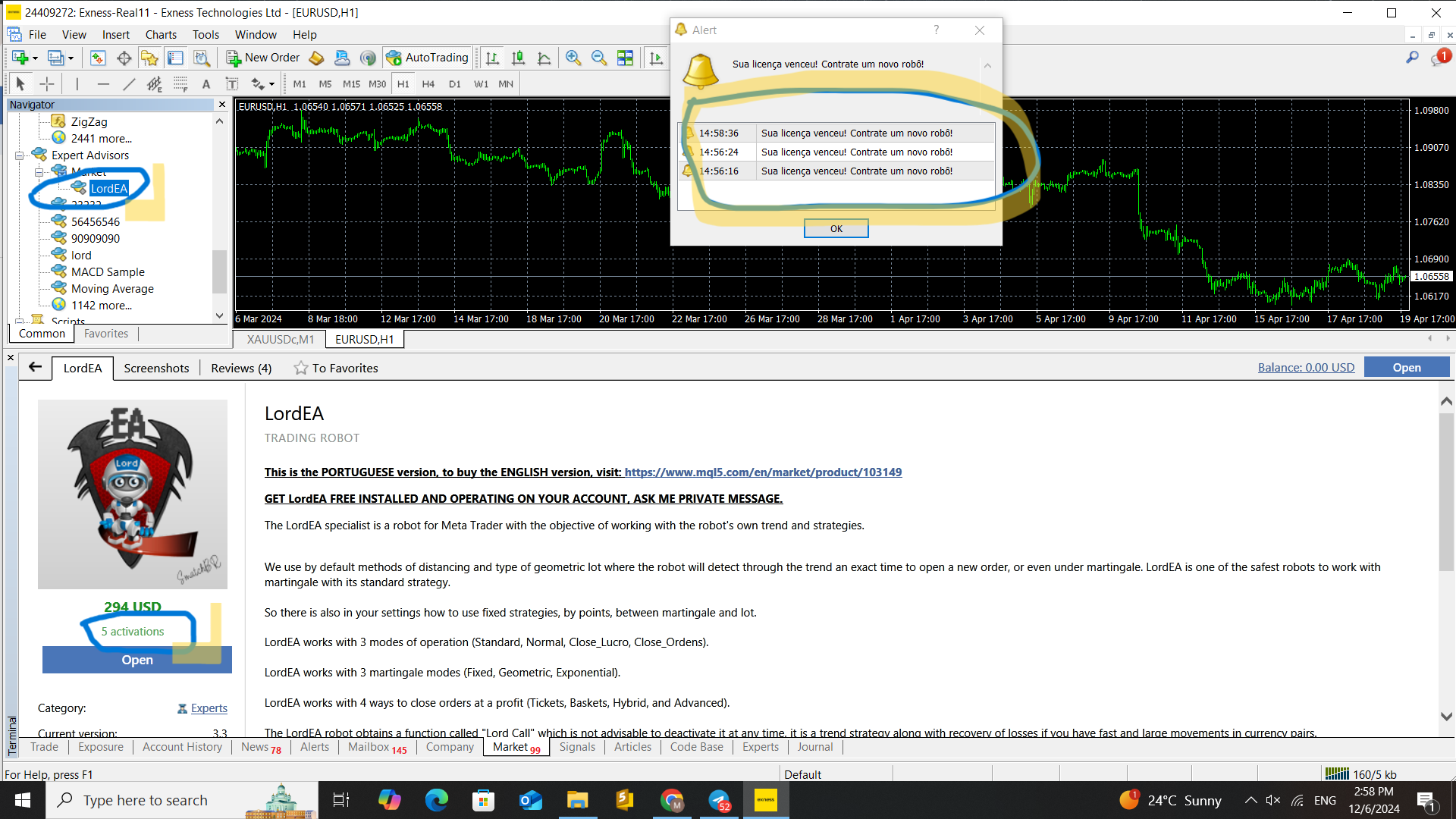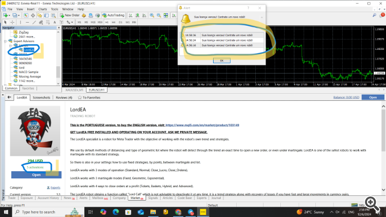 Update your LordEA, if anything, just uninstall/install again.