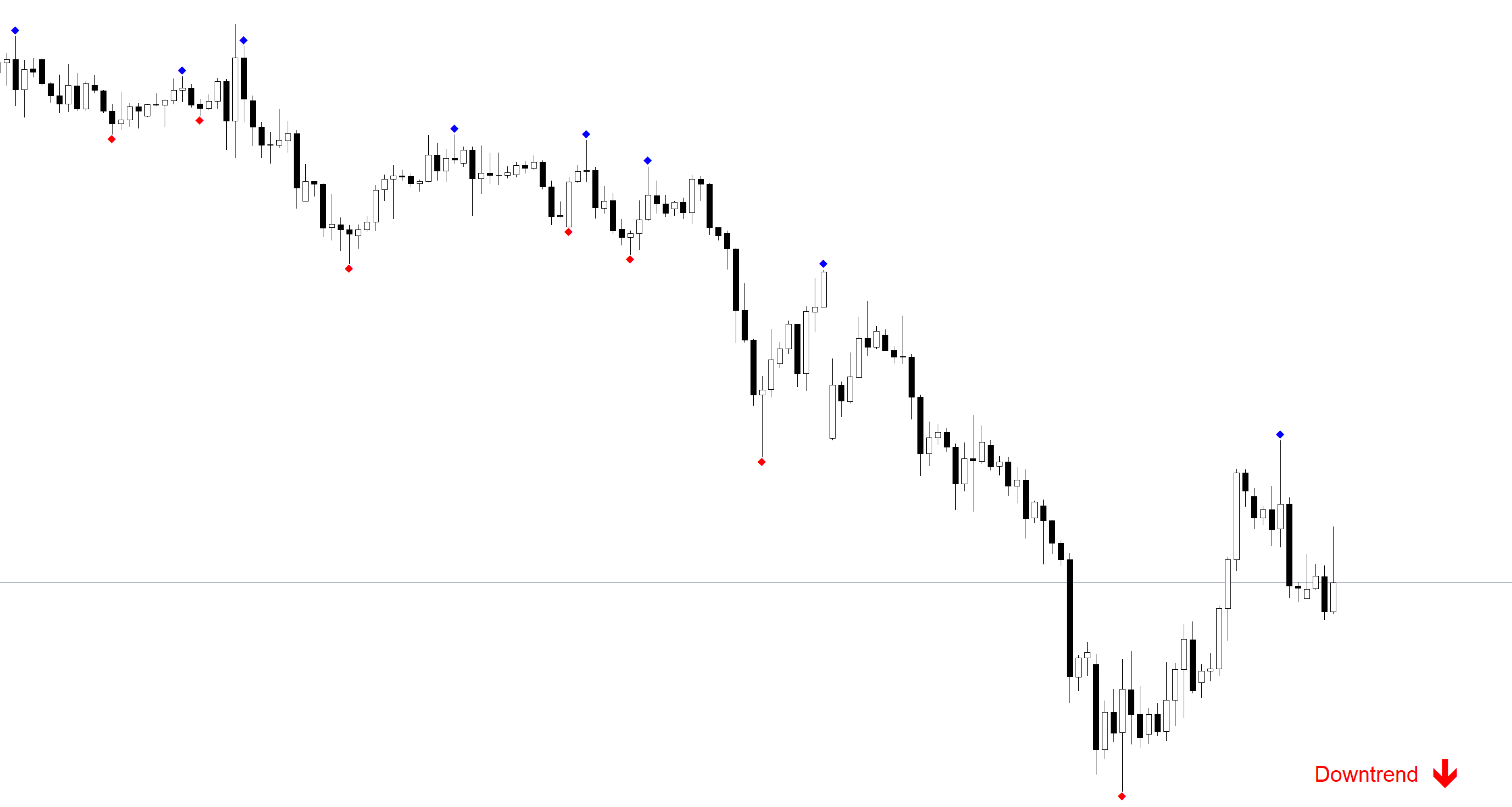 Here is an example of EURUSD daily in a downtrend. Trend Viewer Pro and Cycle Finder Pro is saying the Trend is Sideways.