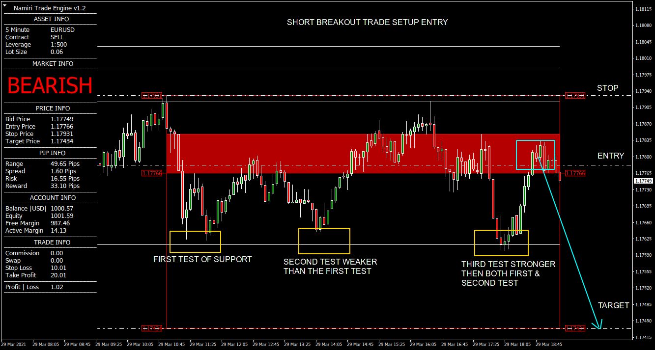 Namiri Trade Engine market info is BEARISH; Price retested the support three times with the third one stronger than the other two retests indicating a high probability of price breaking to the short side