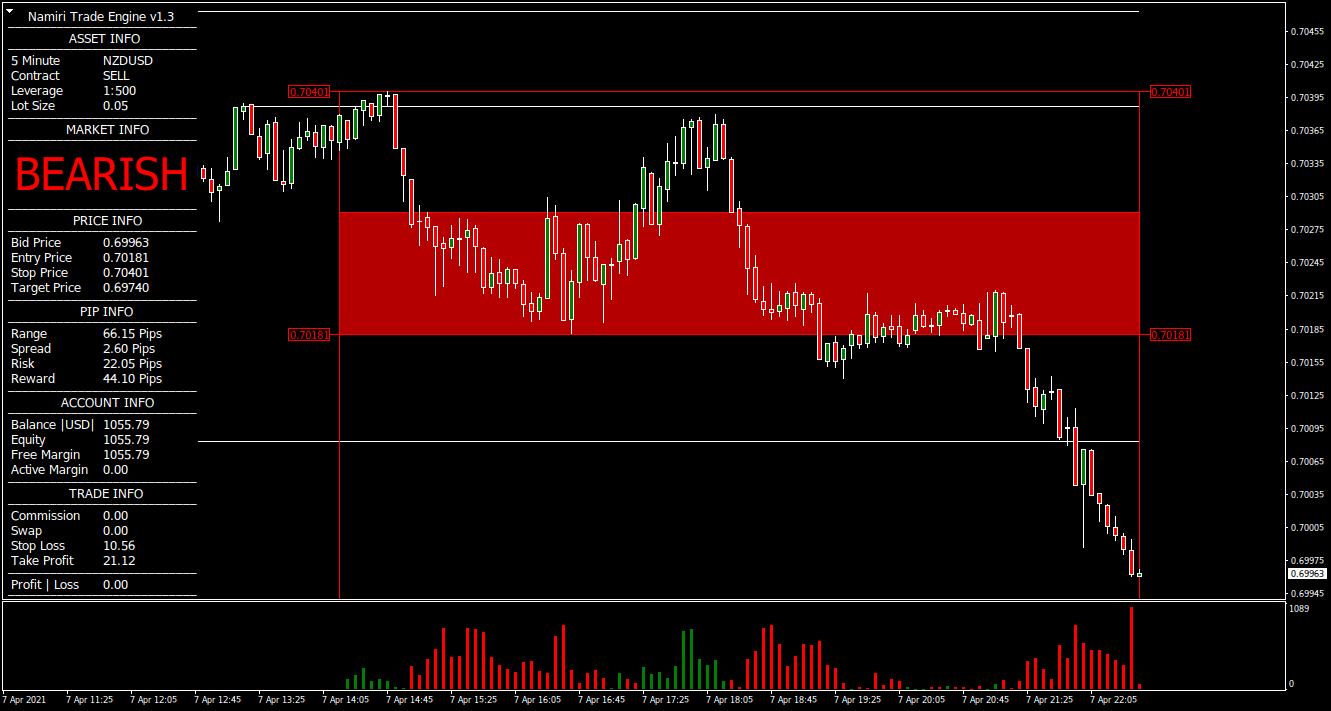 I took a High Risk Short Trade on the NZDUSD M5, stop loss set, target set for a 1:2 risk:reward ratio.