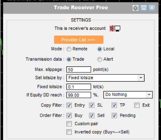 This EA is to receive signal from another account that use trade copier. You will install it to the receiver account. It's free to use.