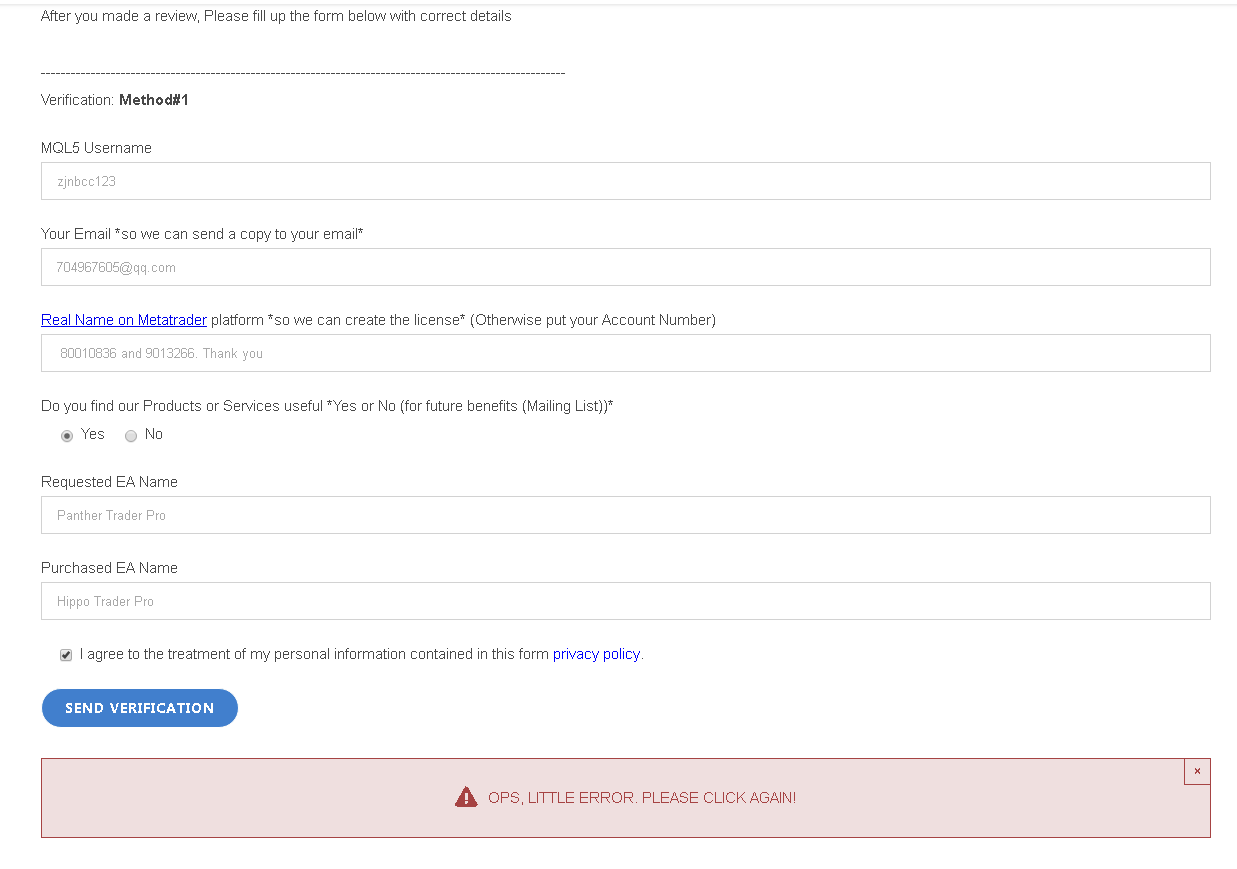 There have been some small mistakes. I have filled in the form many times