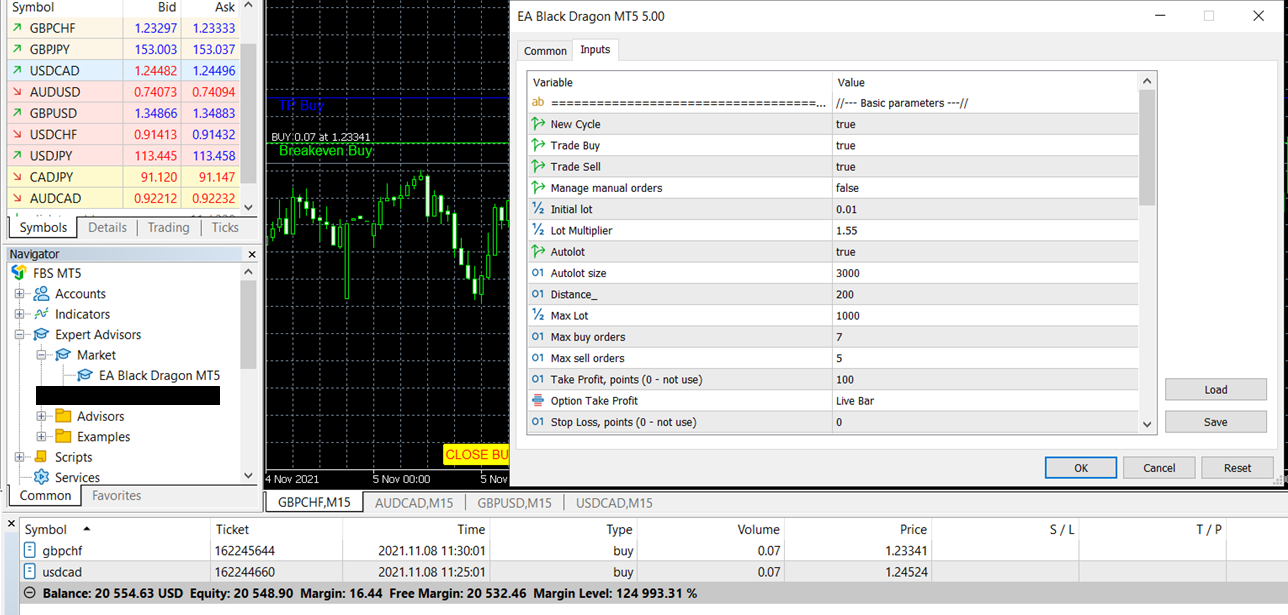 I recently bought EA Black Dragon MT5. Is there any other information on this or shall I just install on suggested currency pair and wait? I know there are settings but can I also play with setting this myself?
