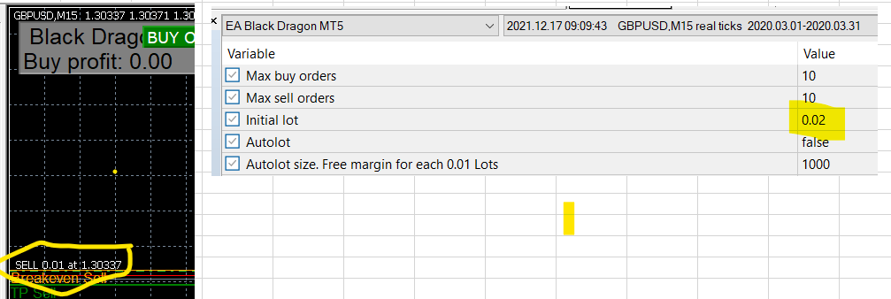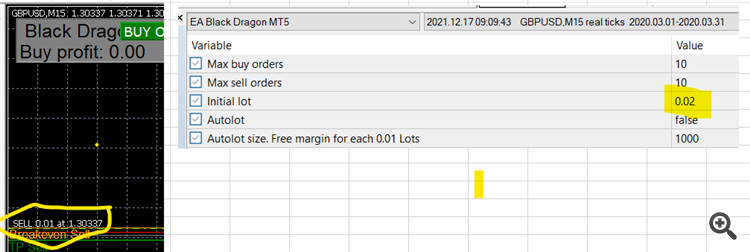 2) And During the backtesting of EABD V6, i tried to increase lot size from 0.01 to 0.02 to check if it will survive the 2021, but it always keep opening initial position at 0.01. Please refer below. Have tried the EAGS in same broker/platform, no issue during backtesting for EAGS with increase lot size. There is no issue for EABD V6 when i tried it in demo account using 0.02 lot size,it opens initial lot size at 0.02. Only in backtesting i enocunter that it always open at 0.01. Please kindly help to check.