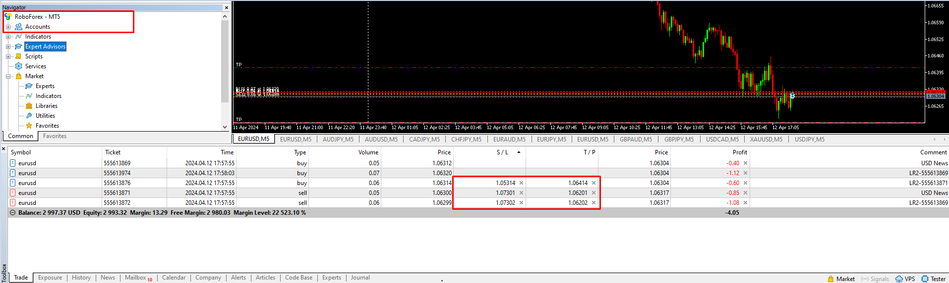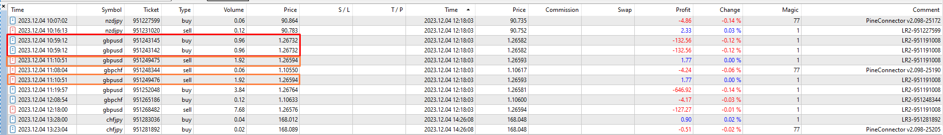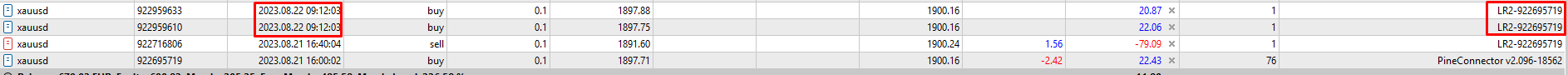 Beside those 'double orders' placed at the same time, the LR2 positions now have TP/SL values.