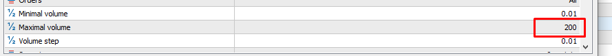 As you know, there is 'max. volume limit' for each instrument, defined by each broker.