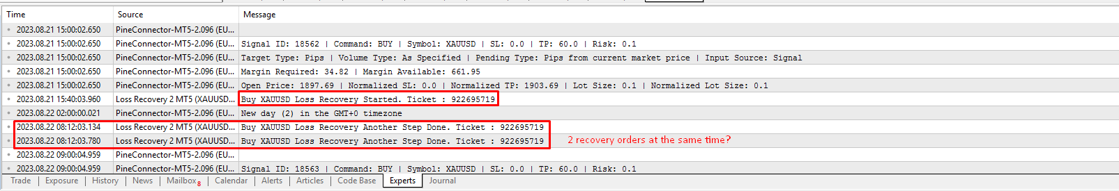 This EA placed 2 recovery orders at the same time, but this is not normal.