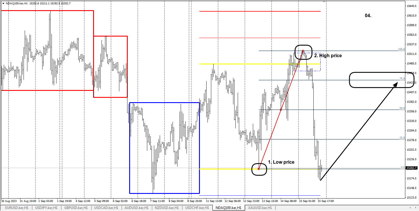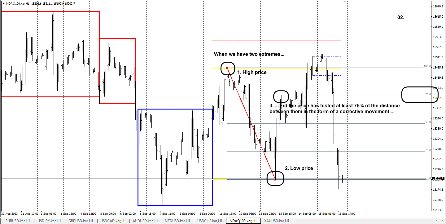 3. In screenshot 4, we have two new extremes and we expect the price to test at least 75% of the distance between them in the form of a corrective move...