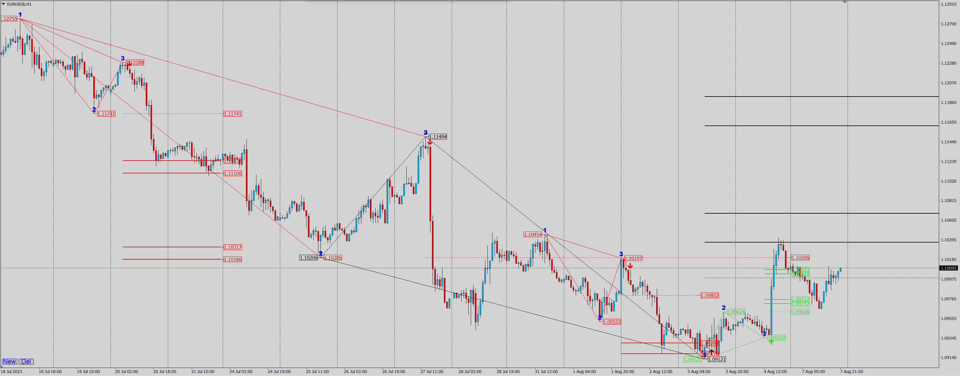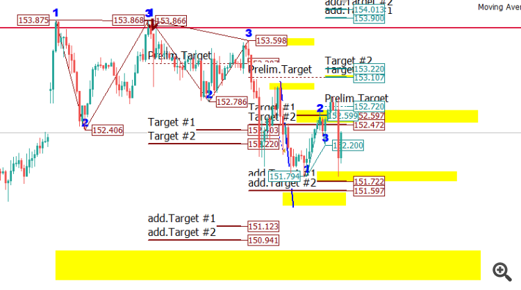 Setting points 1, 2 and 3 manually allows you to see the targets of not only impulse movements, but also corrective movements, and movements of an higher and smaller TF on the same chart. If the indicator puts points 1 and 2 automatically, then it will lose its flexibility, because points 1 and 2 may not always coincide with the zigzag points, as in the "Pattern-123" indicator.