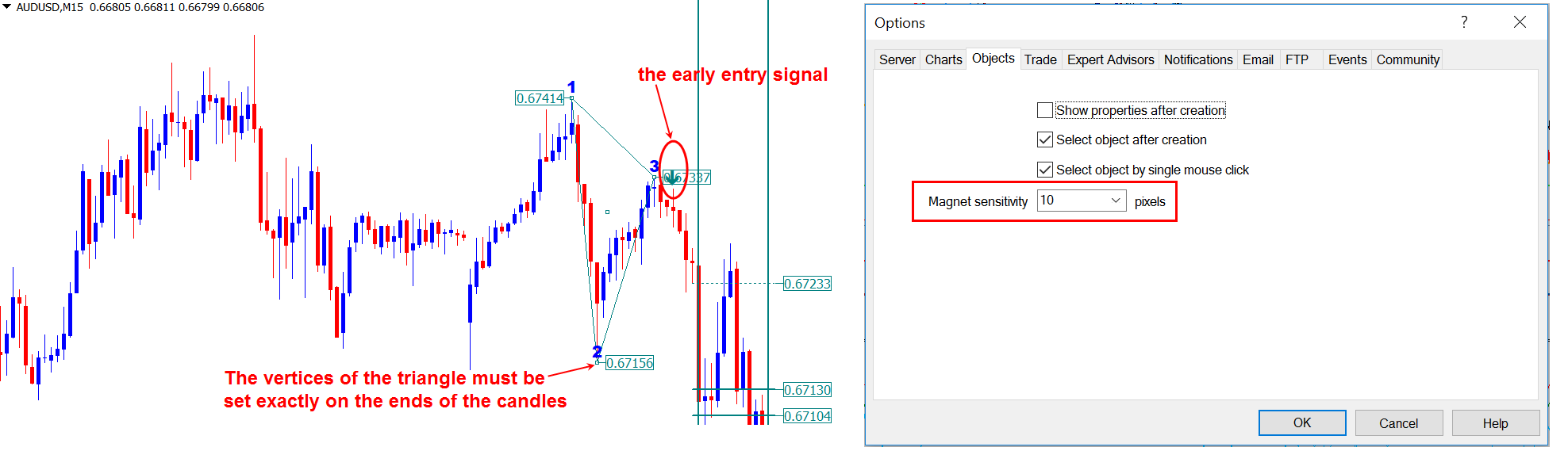 Otherwise, the triangle will not be able to give an early entry signal (arrow).