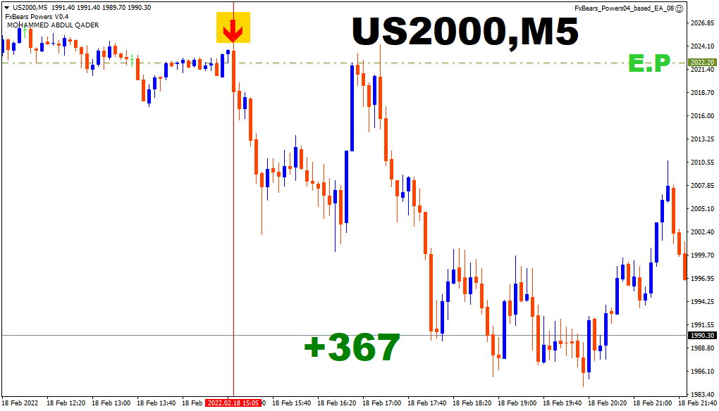 Today scalping on US2000 from the terrible indicator FxBears Powers achieved +166 pips easily with no reversal.
