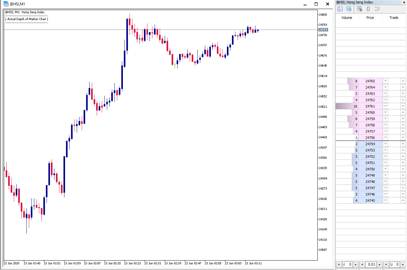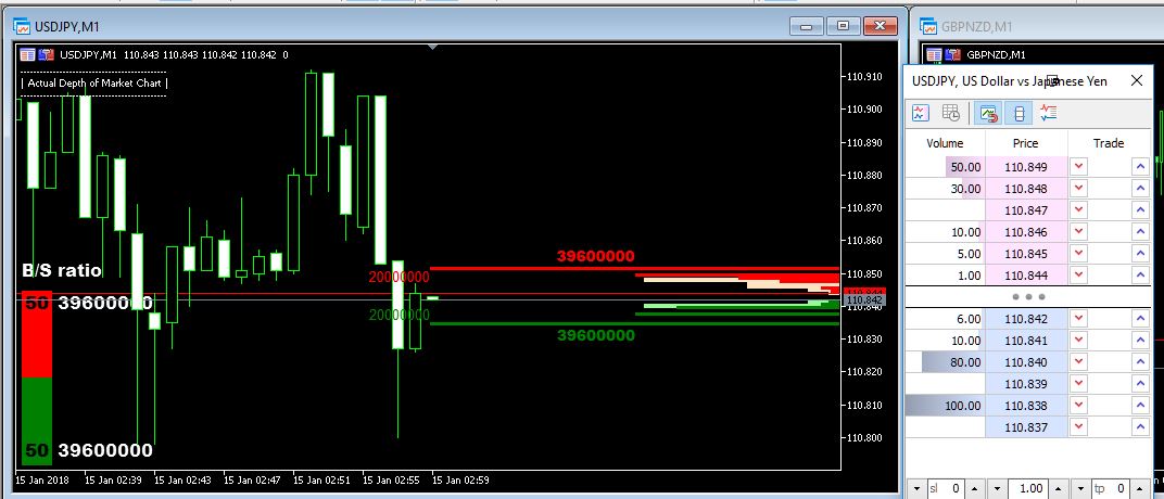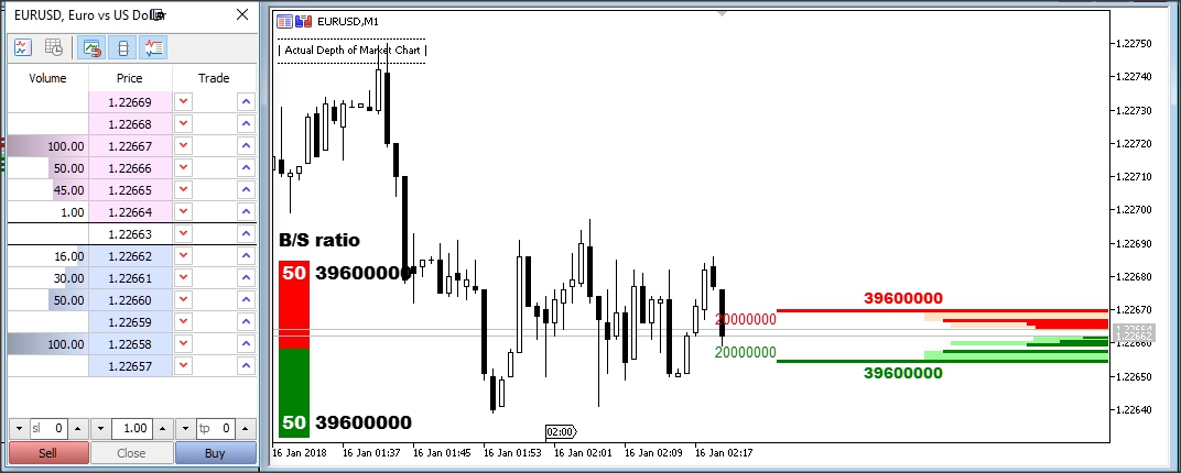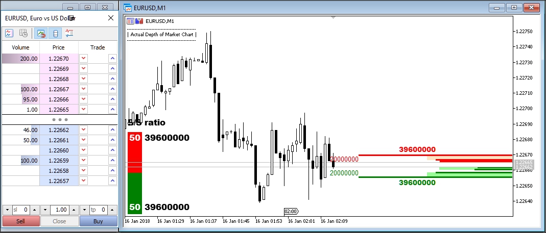 The histogram on my chart and the data on my Market Depth Window is not the same. In the window it is obviously not balanced, but it draws out on the chart always the same figures. 39600000 and 20000000.