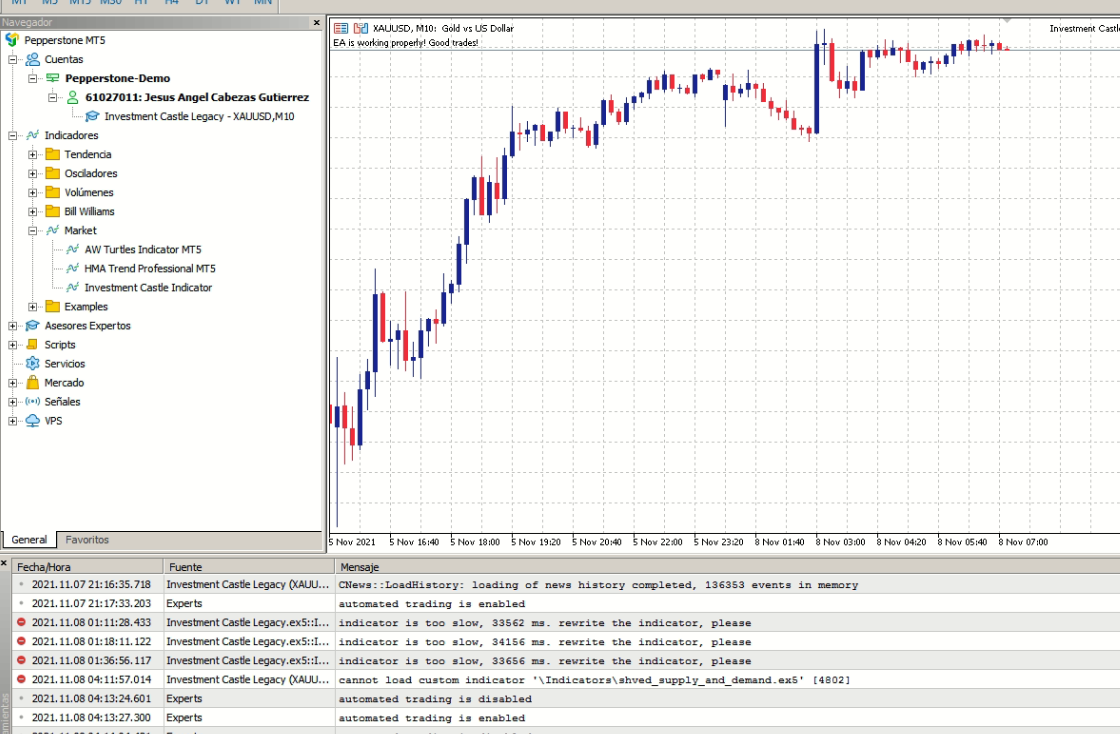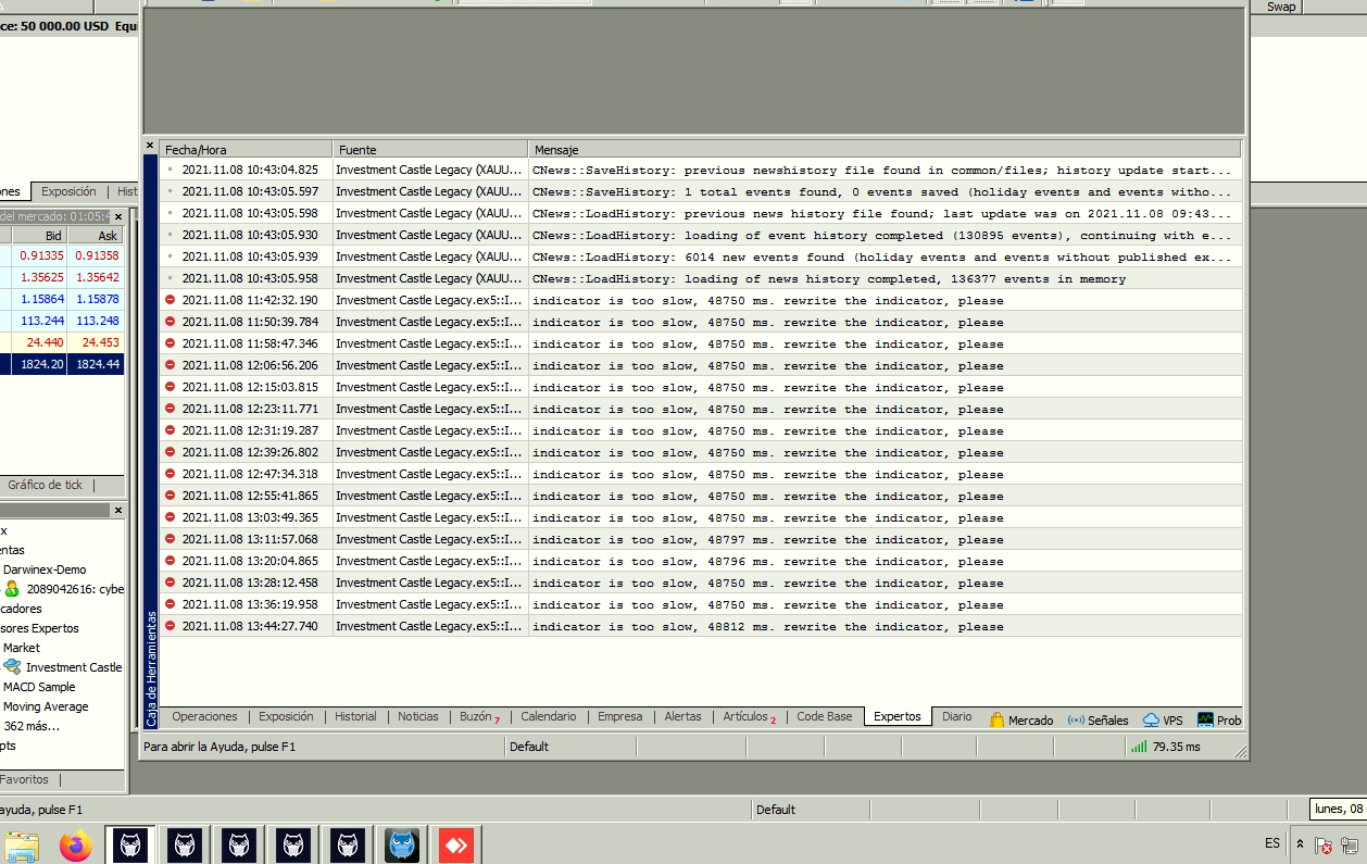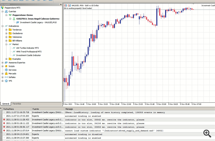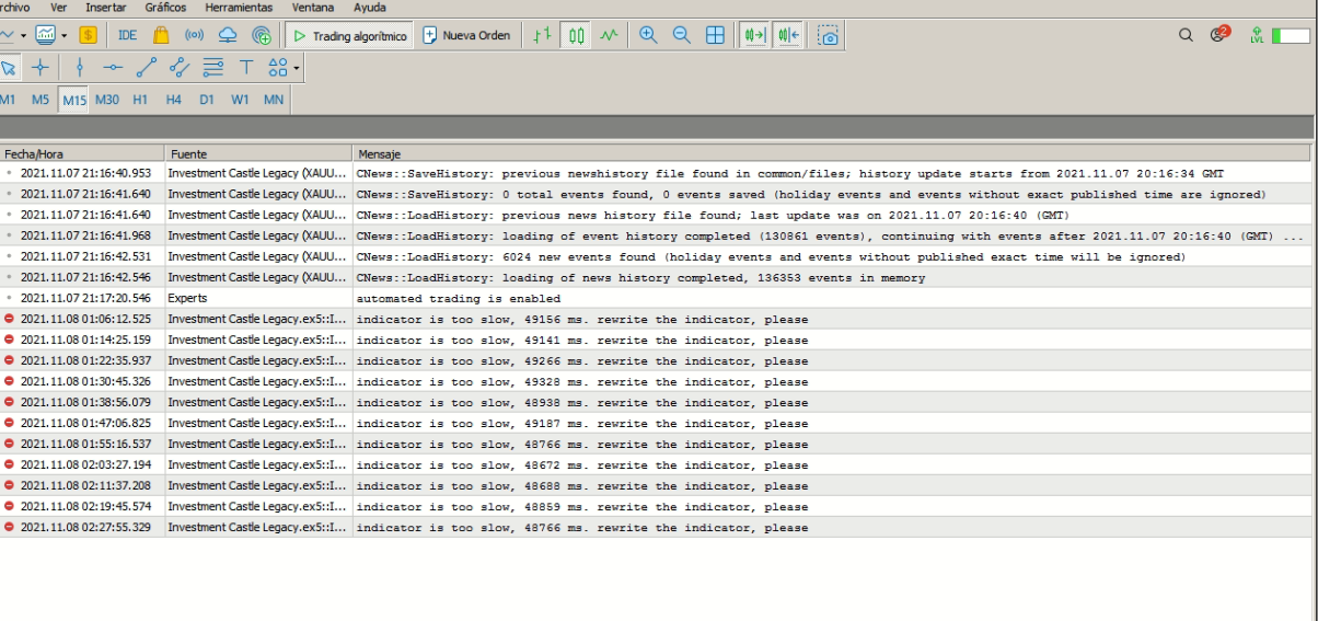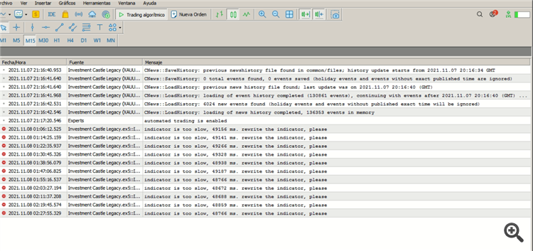 '2021.11.08 01: 36: 59.004 Investment Castle Legacy.ex5 :: Indicators \ shved_supply_and_demand (XAUUSD, M20) indicator is too slow, 33485 ms. rewrite the indicator, please