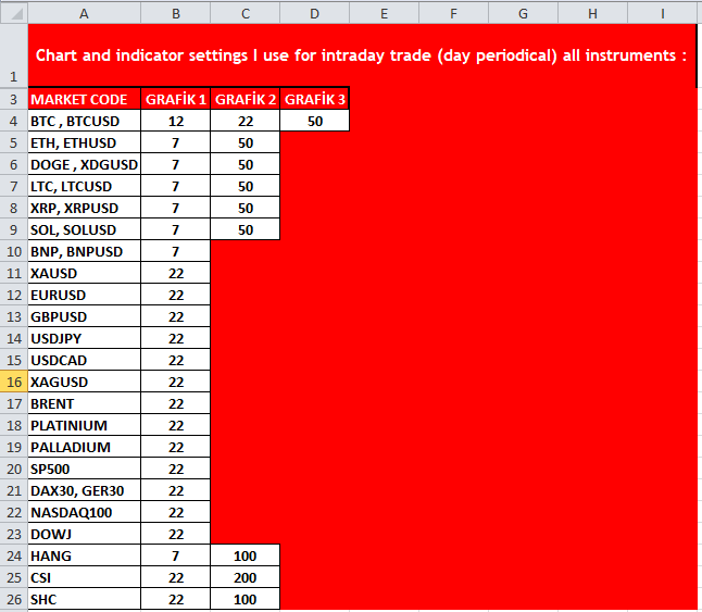 Chart and indicator settings I use for intraday trade (day periodical) all instruments :